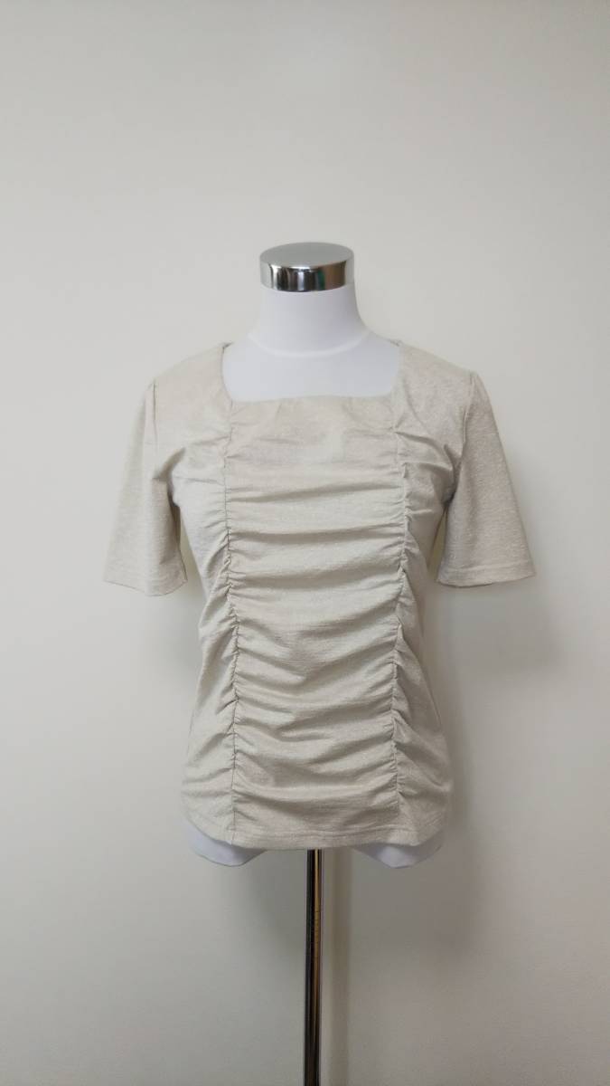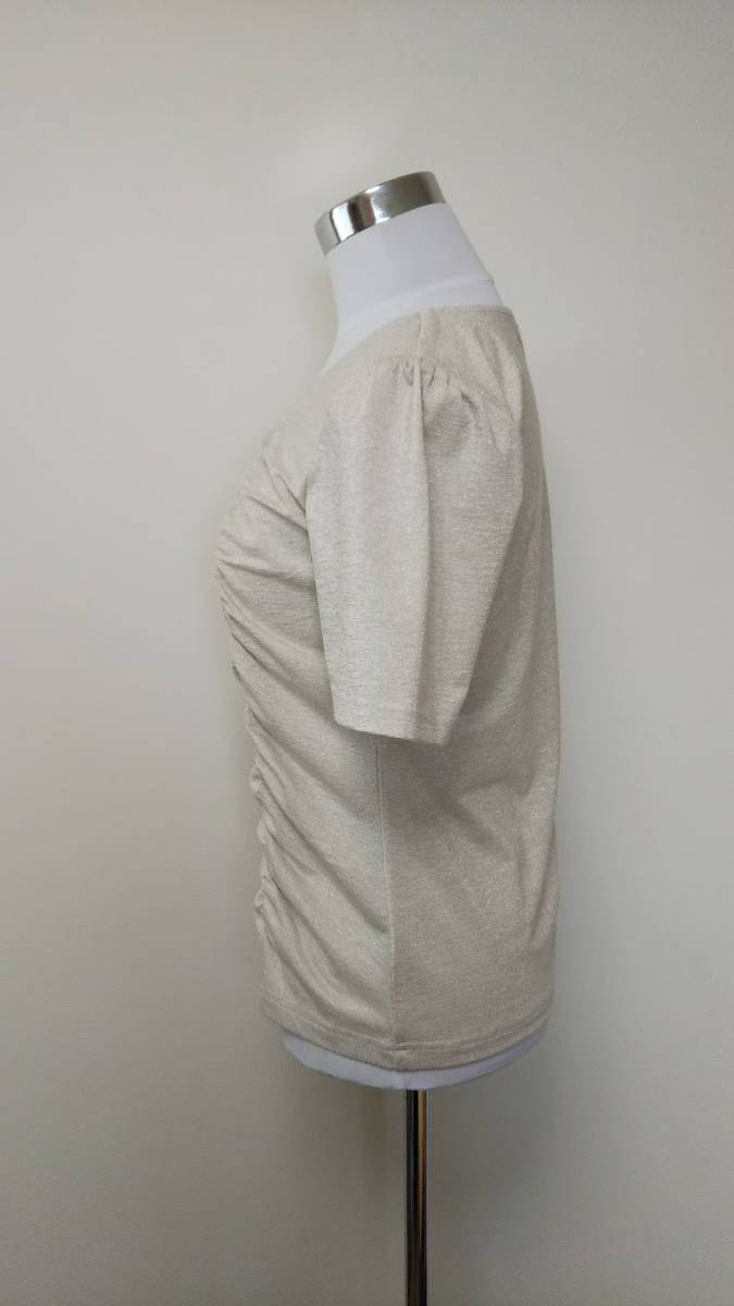 f MALE&Co. メイルアンドコー トップス 半袖カットソー シャーリング ラメ入 ベージュゴールド