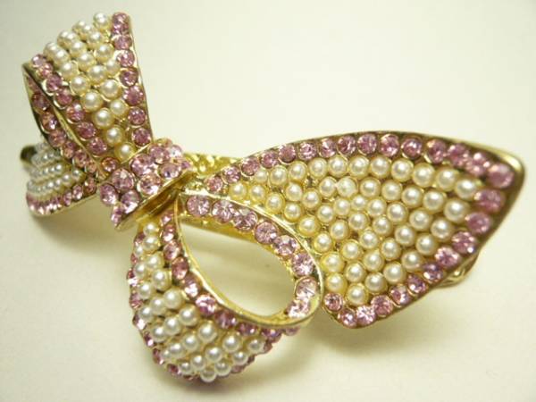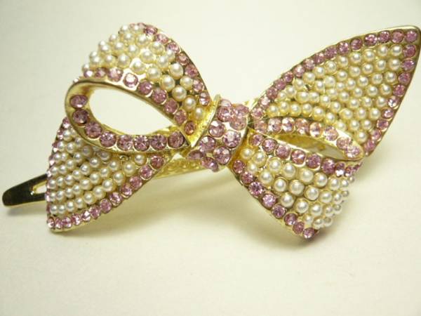 パールとラインストーンで、りぼんのモチーフを埋め尽くしました。 | ||