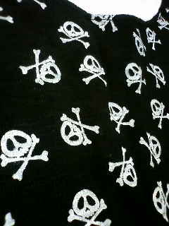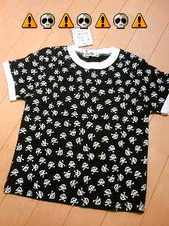 新品タグ付★サイズ110/平置丈約41脇部身幅約32★綿100★黒白★ ♪小さなドクロが前後いっぱい総柄Tシャツ♪