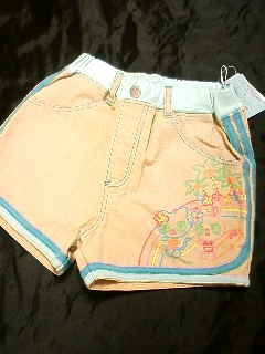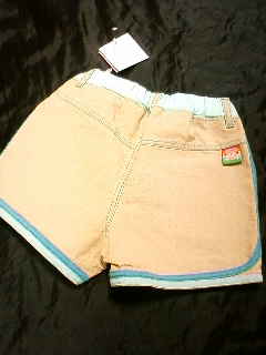 【コミカルキッズ】新品タグ付★サイズ110★綿70ポリエステル25ポリウレタン5★ウエスト総ゴム★キナリベージュ系×水色★ ♪ナチュラルな麻っぽい生成りカラーにカラフルなキャラクタープリントが可愛いショーパン♪水色のラインやステッチも爽やかです♪