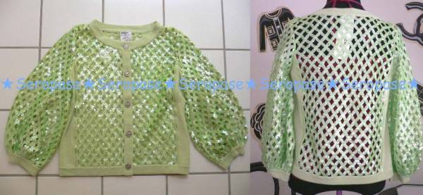 大変素敵なスパンコール装飾のカーディガン。ジーンズに併せて頂くと、とっても可愛らしくって素敵♪とても綺麗なアップリグリーンのお色です。日本では入荷数の少ないお色です。