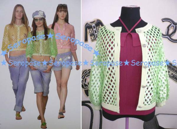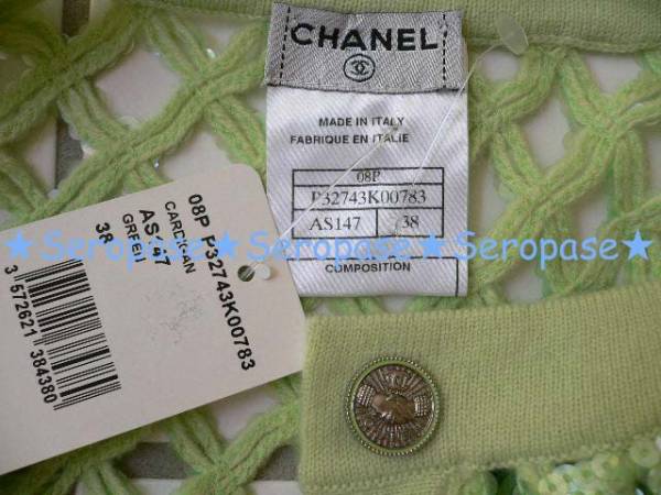 ★08Pシャネル CHANEL 可愛いグリーンスパンコールカーディガン38