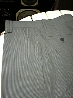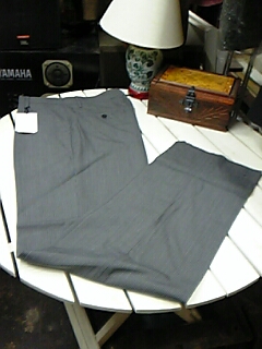 ノータック Y ポケ デザイン の エレガントな モードパンツです。生地は ミディアムグレー色 で 3㎜ 間隔のペンシルストライプパターン です。素材は ポリエステル 65 %  レーヨン 35 % です。サイズは ウエスト 76cm ワタリ幅 31,5cm 腿幅(股下 10cmの所) 29,5cm 裾幅 21,5cm 前股上 31cm 股下(フリー状態) 85cm です。 勿論 新品ですので、お好きな長さで 裾上げ修理し 着用可能です。 そして、御希望により 裾上げ修理等も 実費にて承ります。 尚 毎週木曜日は業務休業で御座います。ご連絡 ご発送とも 休業日明けに ずれ込む事 ご了承下さい。