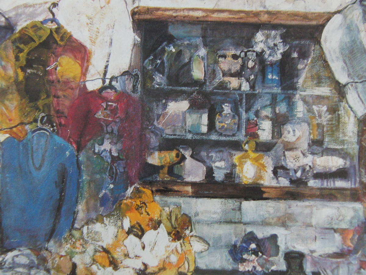 森川静江、〈店先〉、希少画集画、高級新品額・額装付、状態良好、送料無料