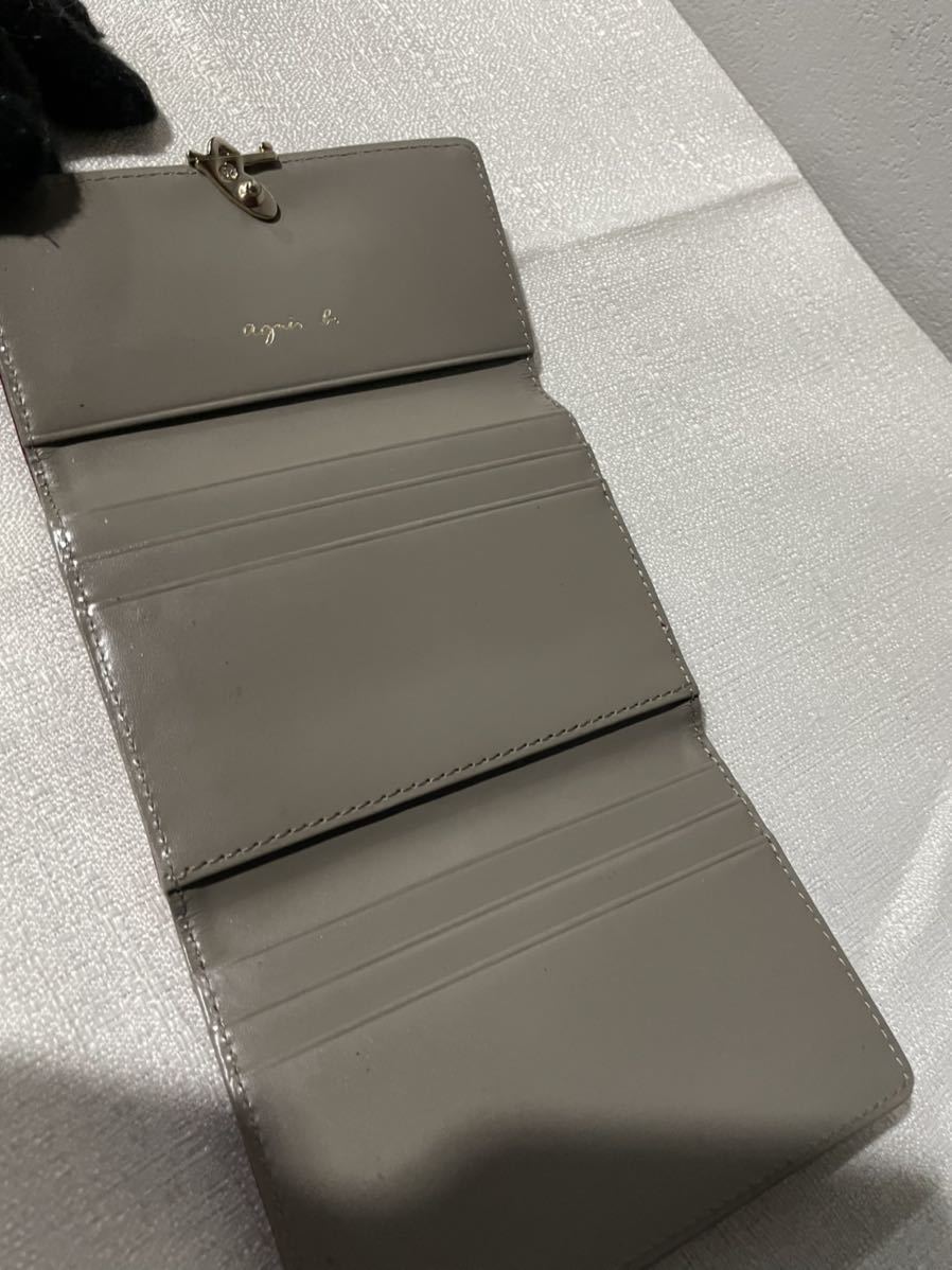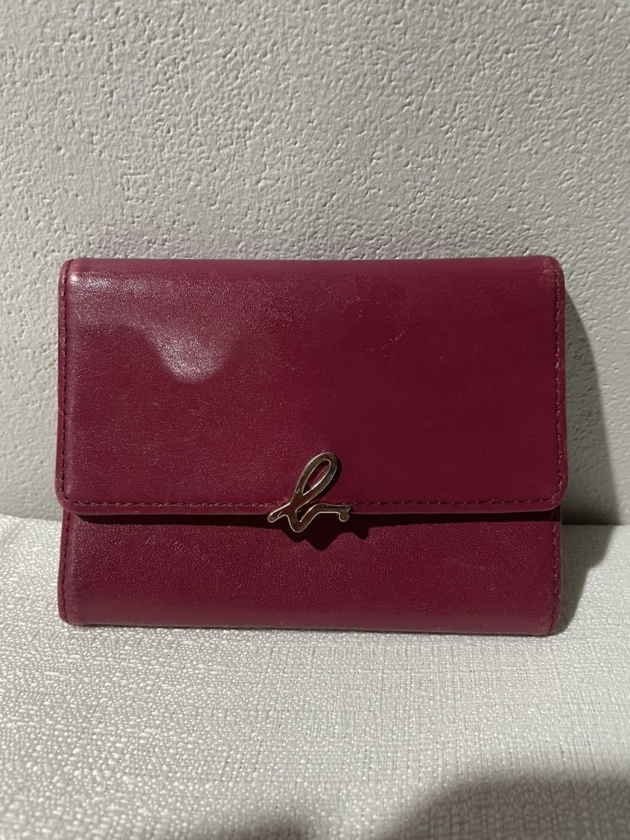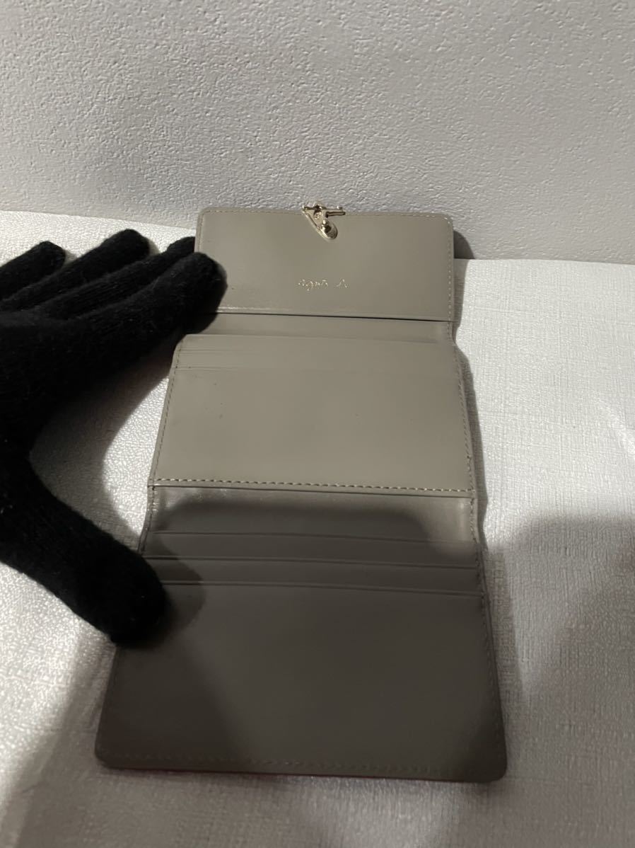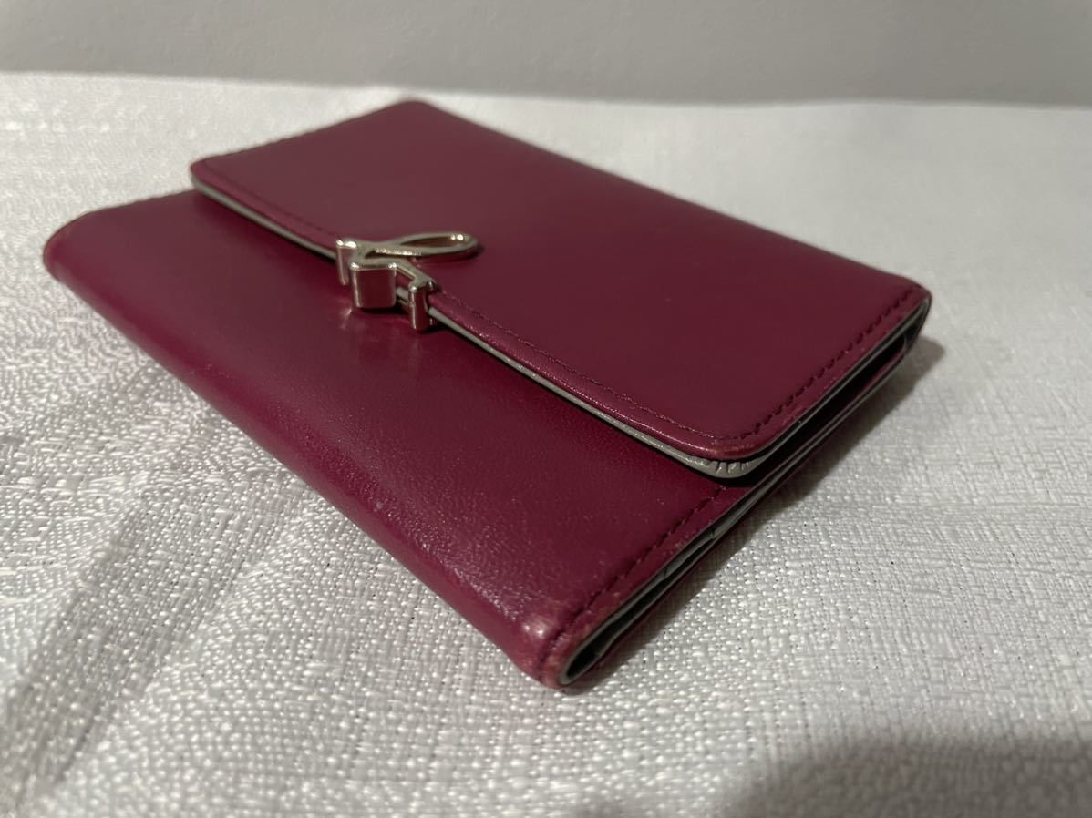 アニエスベー agnes b. カードケース 三つ折り レザー ワインレッドレディース本革赤マークロゴ