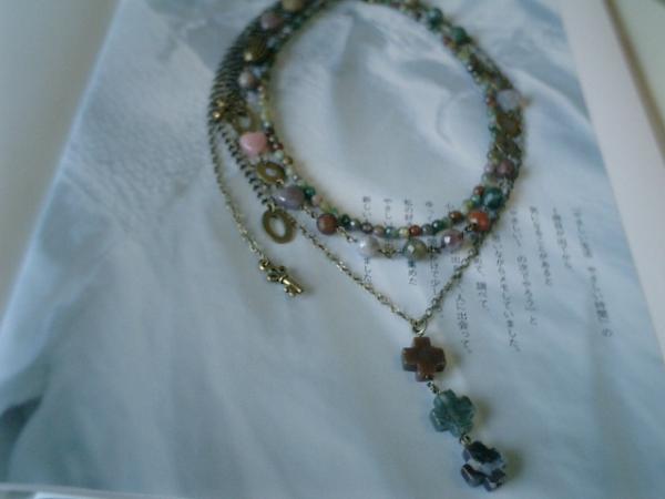 シルクロードに憧れてⅡいろんなお色が可愛いインディアン・アゲートのネックレスです♪お揃いで着けていただきたいので3本セットです♪シックなお色が楽しいインディアン・アゲートの3ミリは丸カット玉です。合わせやすいシンプルなデザインです♪長さは37センチ+アジャスター11センチ位で最長48センチ位です。可愛い10ミリのハートやメタルチャームが入ったデザインはインディアン・アゲートの8ミリの丸カットです♪シックで大人っぽいお色です♪長さは全長58センチ位で調節自由です♪トップに12ミリのクロスのインディアン・アゲートの方は長さ全長67センチ位で調節自由です♪トップはクロス3つで長さ5センチ位です♪3本でいろいろな組み合わせで楽しんで頂けます♪シンプルで飽きのこないいつまでも着けられるデザインを考えて作りました!お揃いのブレスレットも出品予定です♪ハンドメイドをご理解頂いてノークレーム、ノーリターンでお願いします