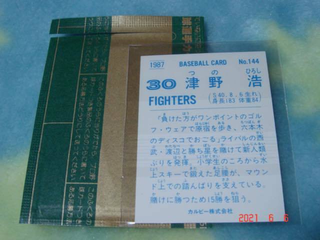 *激レア 未開封・開封品・袋付き  カルビー87年 プロ野球カード NO.144 (津野/日本ハム) 極美品 *