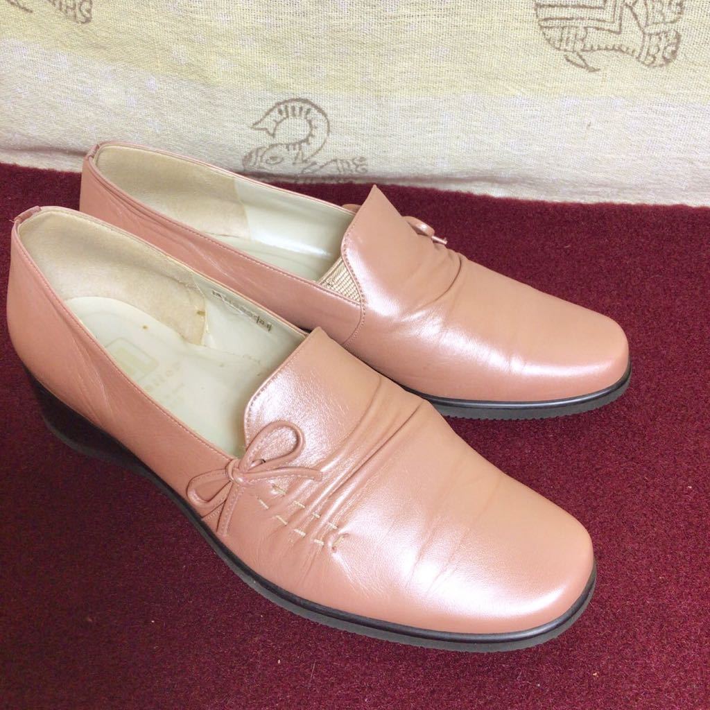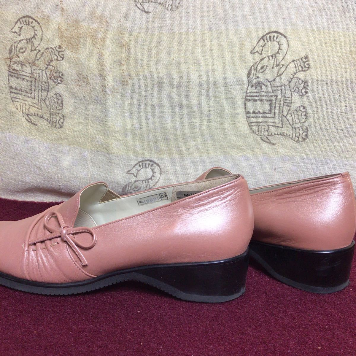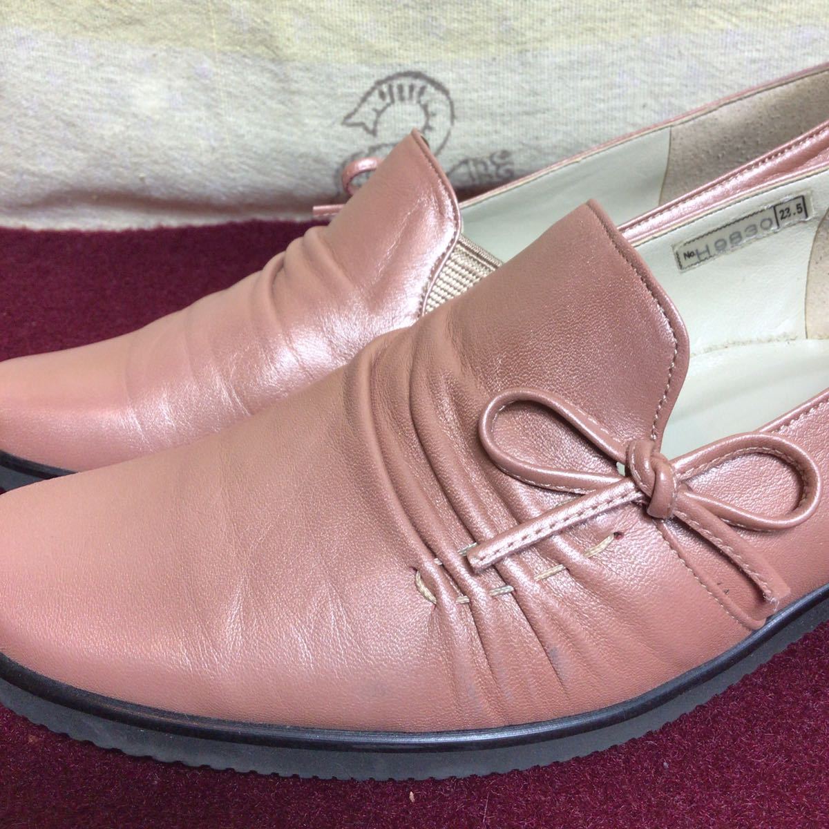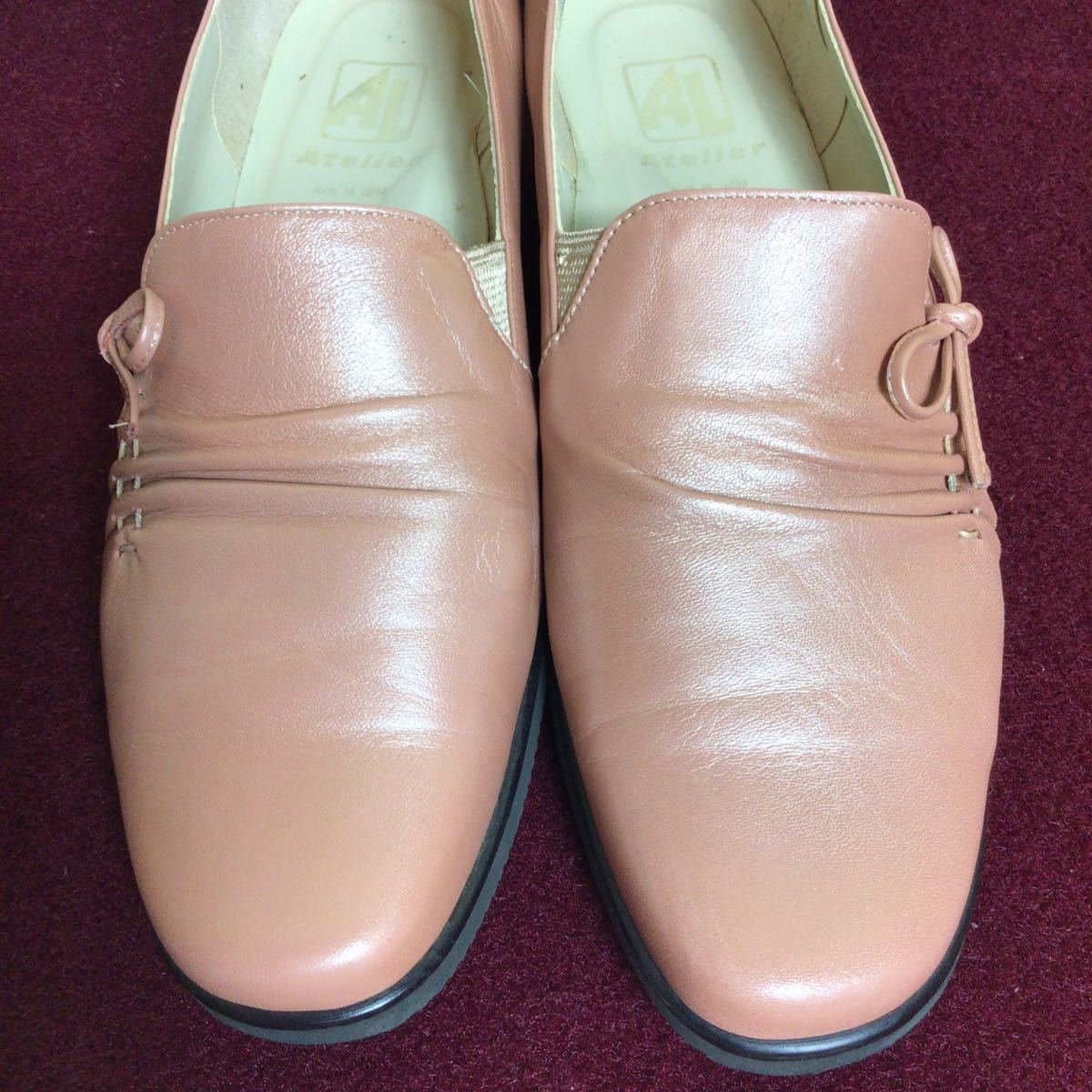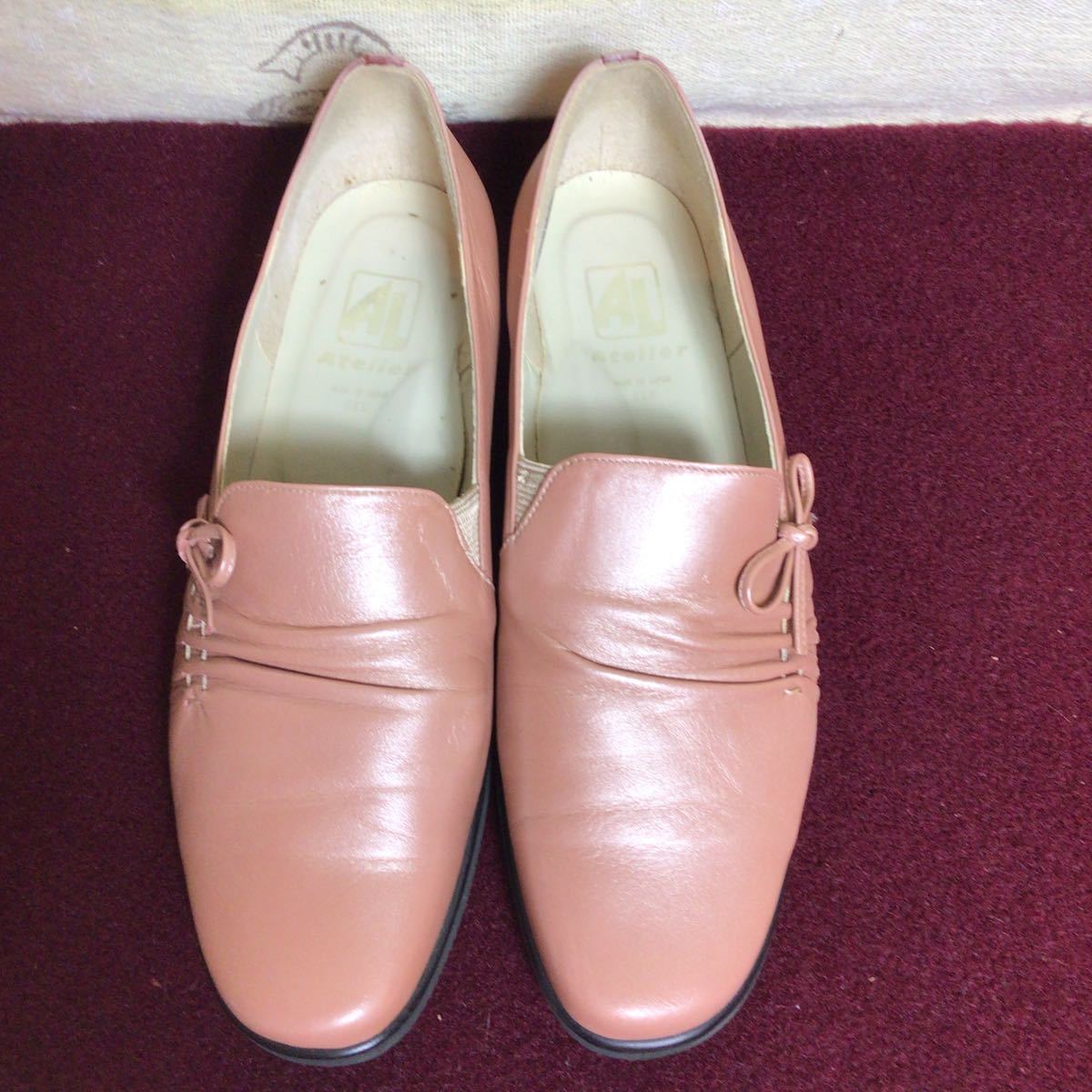 【売り切り!送料無料!】A-115 Atelier!スリッポン!ピンクベージュ!23.5cmEEE!メタリック!リボン!可愛い!スニーカー!ウェッジソール!レザー!中古!