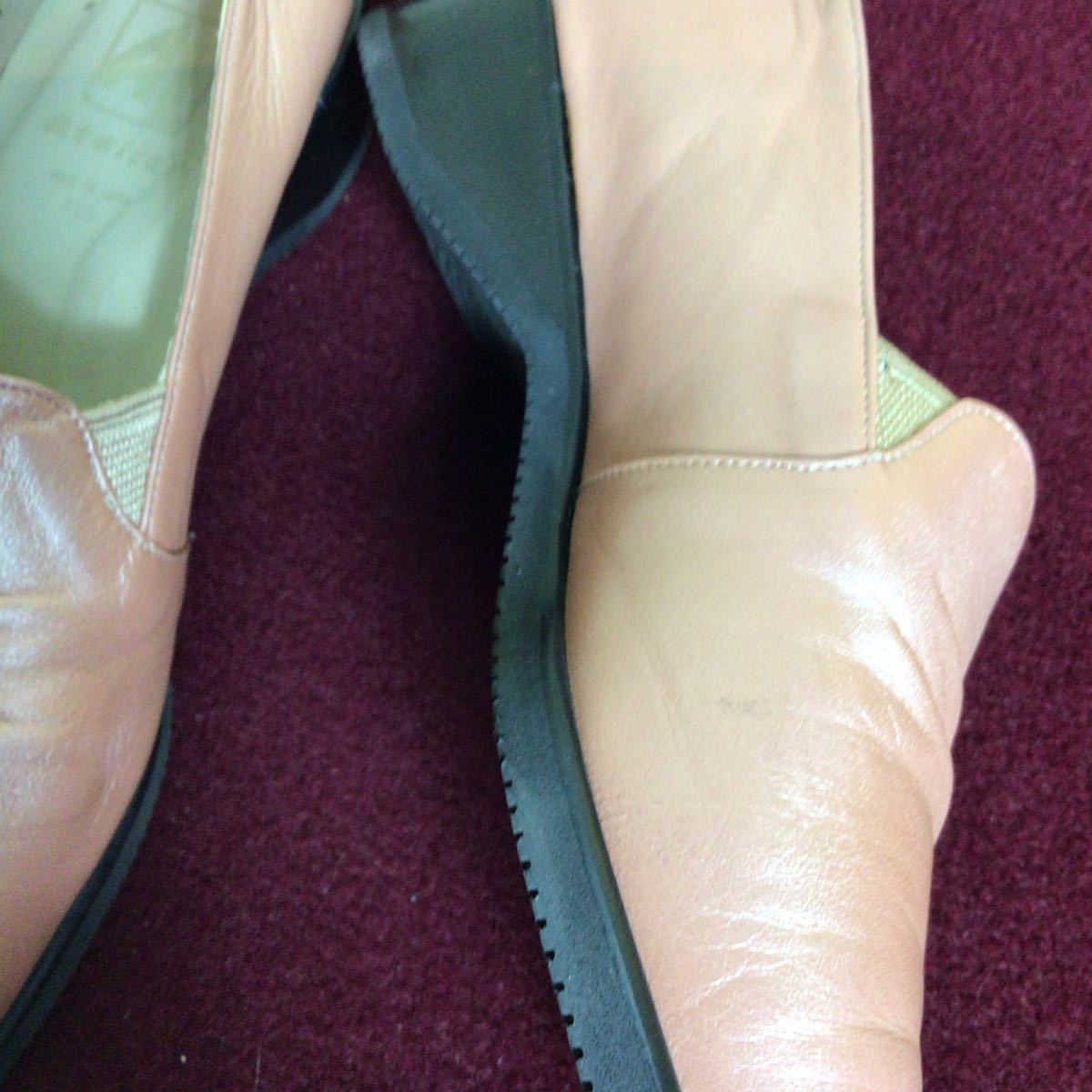 クッション製のあるインソールとウェッジソールのローヒールが歩きやすいかと思います。