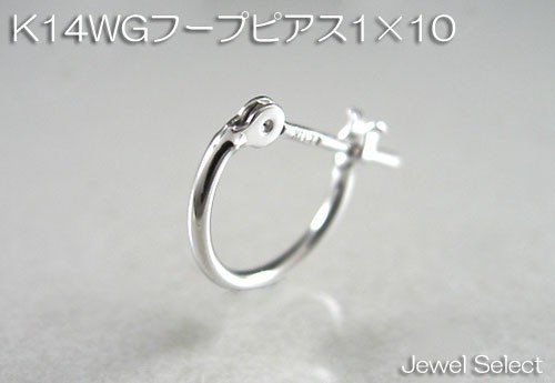 K14WG ホワイトゴールド 1×10 フープピアス 片耳用
