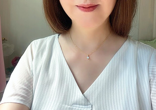 チェーン:長さ約40cm 、アジャスター約5 cm 、全長約45 cm。太さ約0.7mm 、チェーンとトップ着脱可、アズキチェーン。