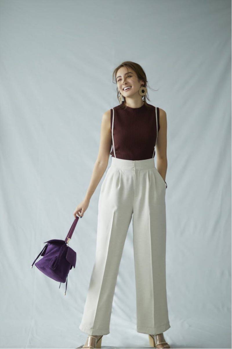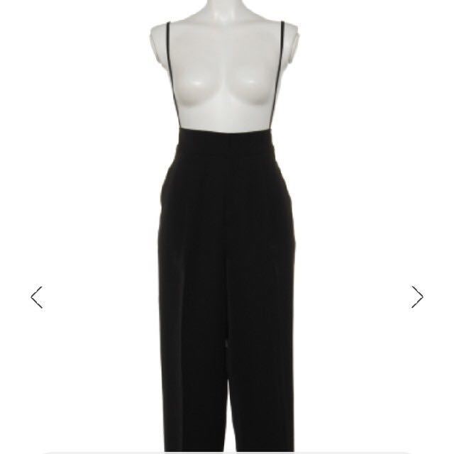 多数雑誌掲載のあった人気のサスペンダー付きワイドパンツです。とてもラインがきれいなパンツです。サスペンダーは取り外し可能です。