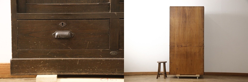 和製アンティーク 昭和初期 栓材 レトロな雰囲気あふれる二段重ねキャビネット(食器棚、収納棚、戸棚、カップボード)(R-058248)です。