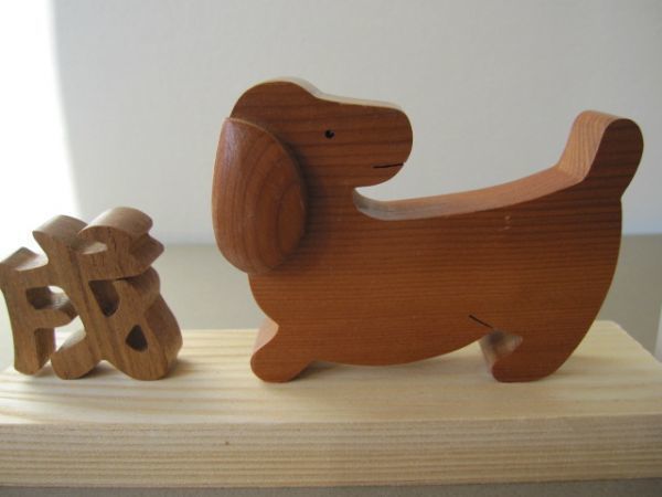 ハンドメイド ワンちゃんと戌文字 置物 (2番)