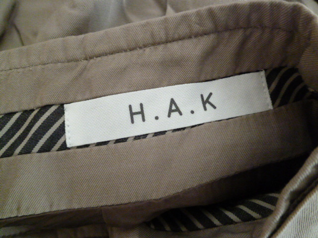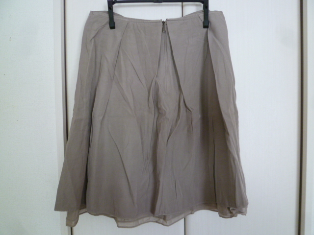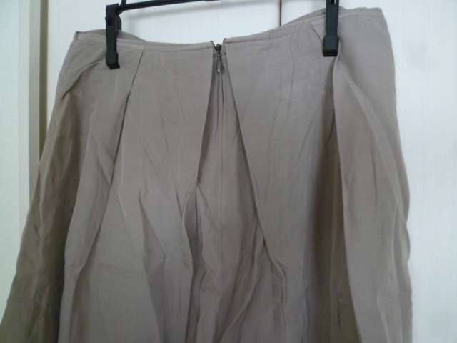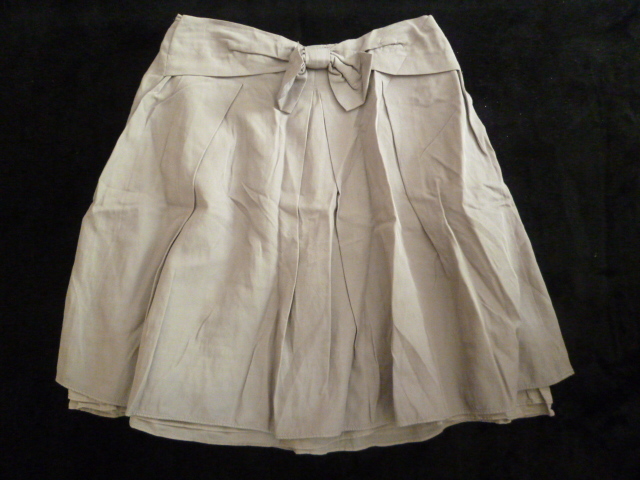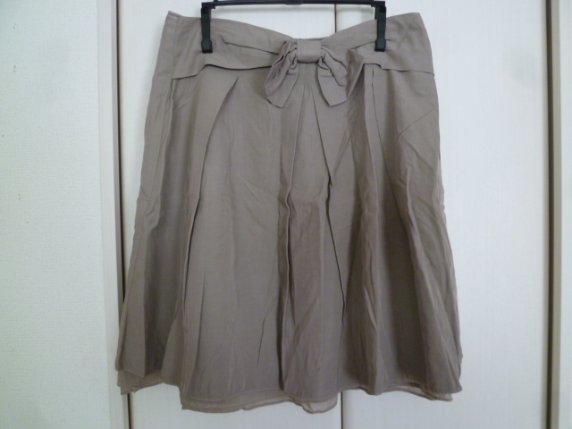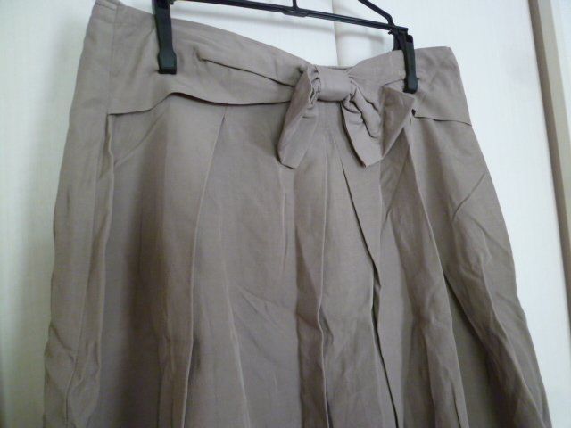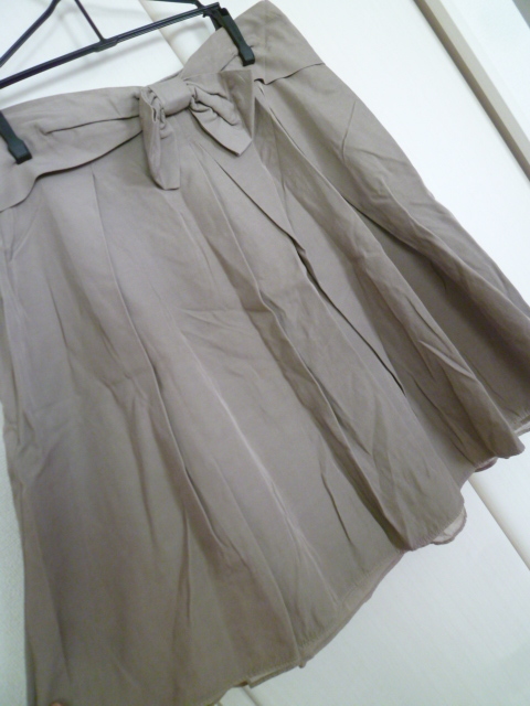 H.A.K/ハク△グレーベージュ系ウエストリボン台形フレアースカート1△500円即決膝丈△SK714