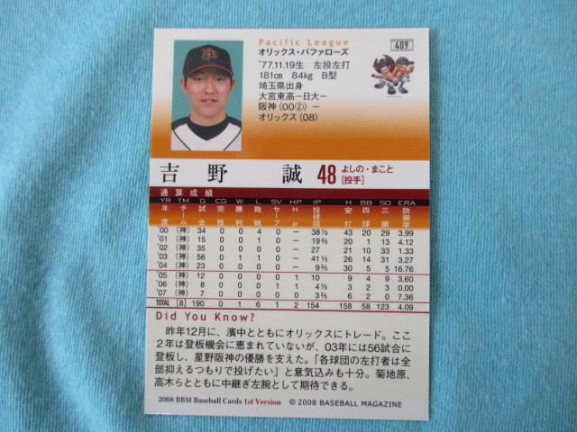 ★BBM 2008★1st Version〔409 吉野誠 オリックス・バファローズ〕トレカ♪