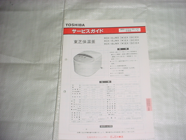 1990年 東芝 炊飯ジャー RCK-10JMX/15JMX/18JMX/のサービスガイド