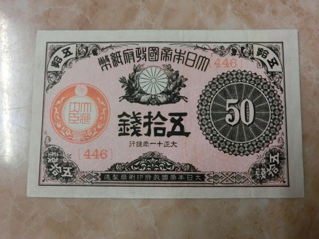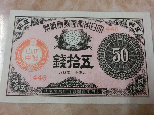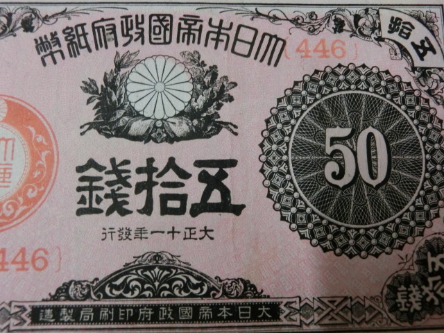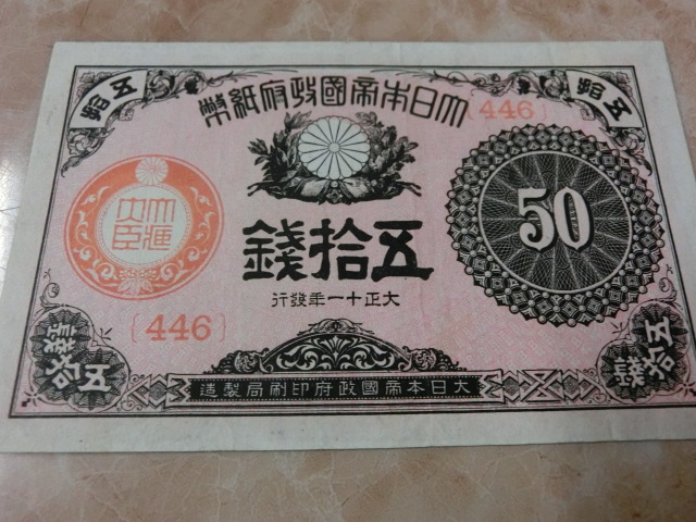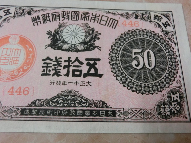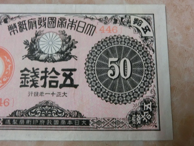 ★ 大正小額紙幣50銭 大正11年 極美品~上美品 ★ No.116-1