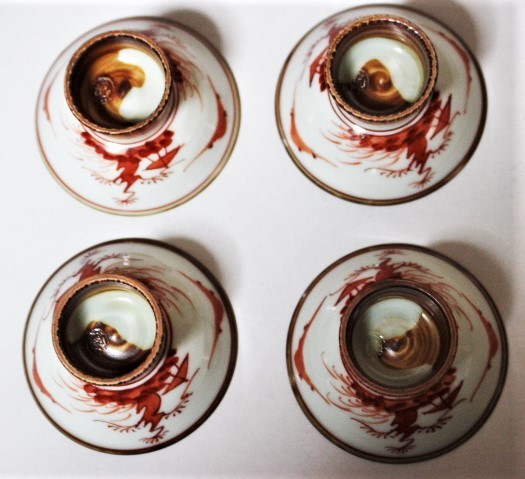 改 ■ め-666 おちょこ 4個 中古 酒器 寸法/単品:高3.3 幅6.1 高台3cm 重さ22.9g 全重量96g