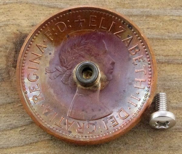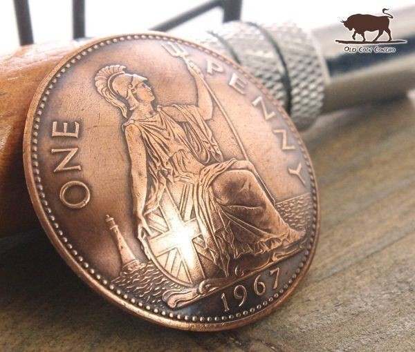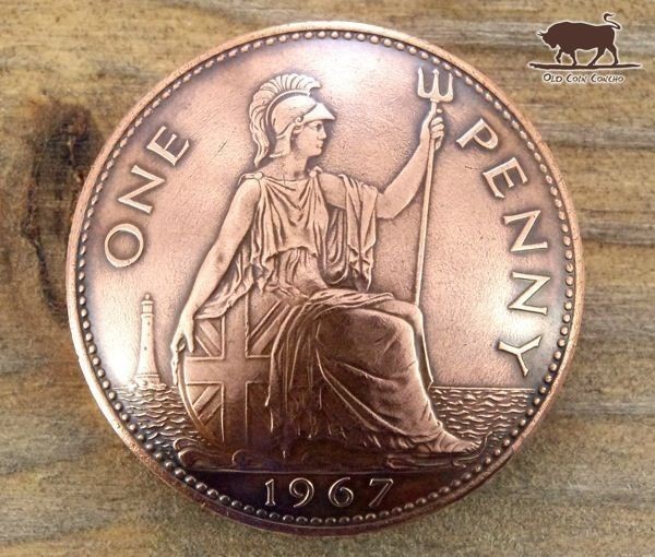 ◆コンチョ ネジ式 イギリス 1ペニー ブリタニア 30mm コイン ボタン
