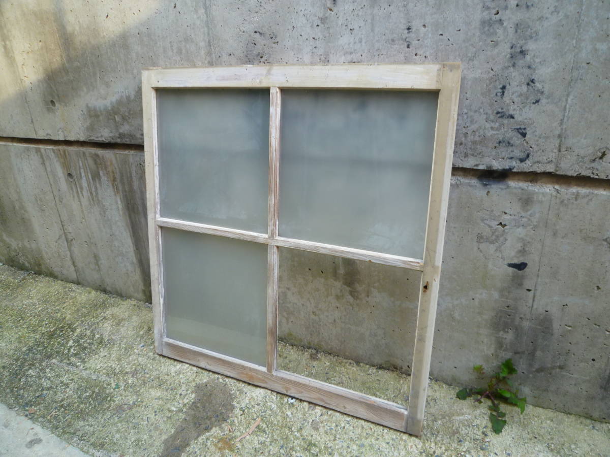 最終値下げ!M7740 50~100年前 割れ有 古窓 擦ガラス 高95.5cm 横93cm 奥3cm(0304)【送り先は会社 事務所 店舗限定】【個人様は西濃運輸局留め】