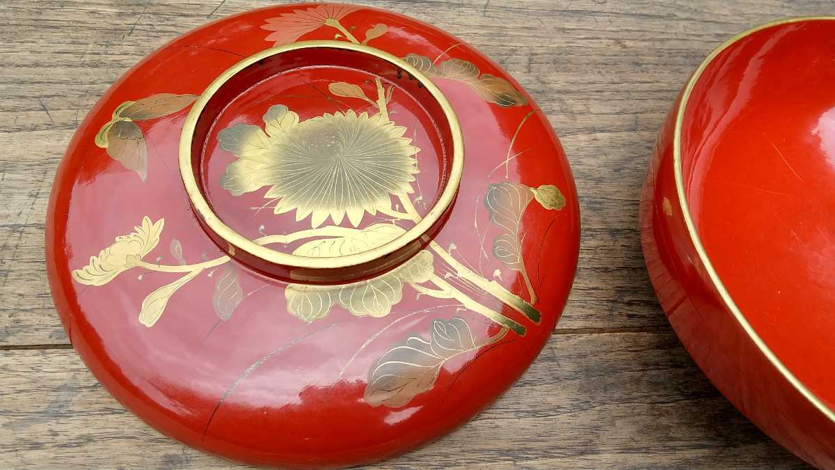 | ご覧いただきまして、ありがとうございます。 以下お読みいただき、入札をお待ちしています。 【商品の説明】 菊蒔絵 大平 【直径28㌢高さ12㌢重さ950㌘】 菊と蝶の吉祥紋様 今後これからなかなか出会えなくなってくる時代物のお品! 【商品の状態】 使用状況 :骨董品です。現在生産及び一般流通していないお品です。 注意事項 :画像にてご判断、ご検討よろしくお願いします。 【発送方法】 100サイズにて発送予定です。 落札後に送料連絡設定してますので、複数落札分は160サイズ以内で同梱対応いたします。 発送に使用します資材は省資源に努めております。 【その他】 その他不明点はお気軽にご質問ください。 よろしくお願い申し上げます。 【最後に】 最後までご覧頂きありがとうございます。 気持ちのよい、お取引を心がけております。 どうぞよろしくお願い申し上げます。 近くに土日祝対応の郵便局がないため、発送にお時間をいただく場合があります。悪しからずご了承くださいませ。 複数落札同梱ご希望の場合は160サイズまで対応できます。メッセージにてご希望確認の上で決済期限内であれば取り置き同梱いたします。 和風で風流な生活骨董を再活用して いついつまでも和がつづきますように! | |||