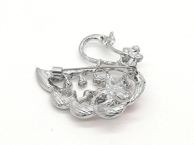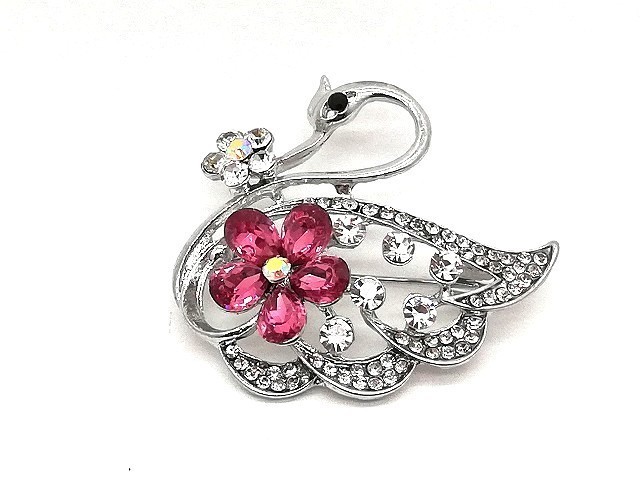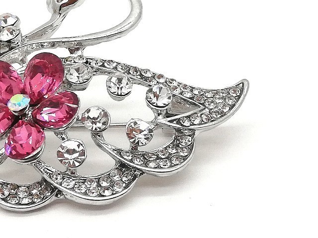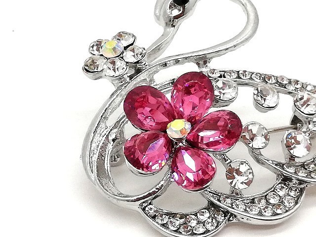 送料無料【新品】アクセサリー ブローチ 白鳥 ピンク★スワン 胸飾り バッジ ラインストーン ブライダル パーティー 発表会 結婚式 成人式
