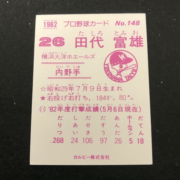 1982年 カルビー プロ野球カード 82年 148番 大洋 田代   【管理NO:3-37】