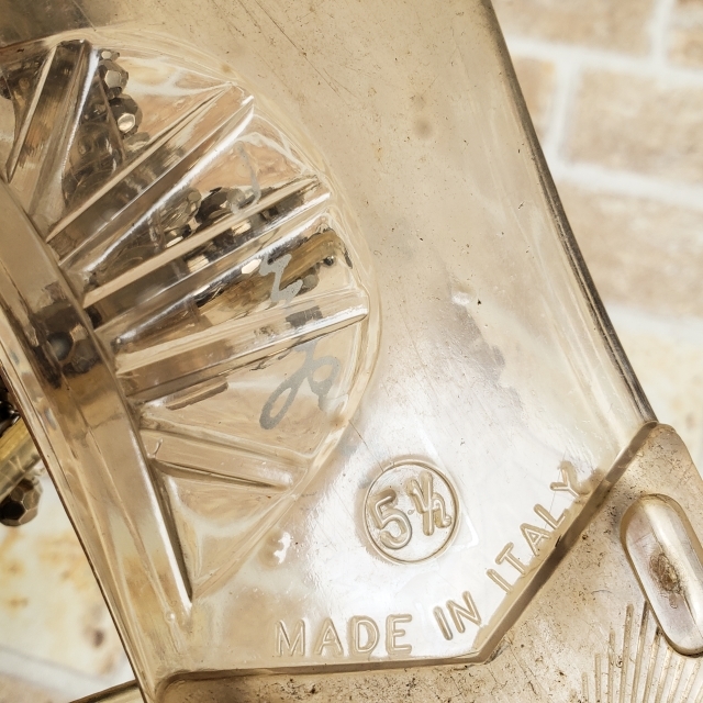 | 商品説明 | ・ビジュー付きデザインの クリア トングサンダルです。 ・素材 ビニール系 ・カラー クリア (画像参照) ・製造国 イタリア製 ・付属品 無し ・サイズ 5 2/1 ※ 23.0cm程度 アウトソール最大幅 約24.0cm アストソール最長幅 約9.0cm ヒール 約1.0cm ・商品コンディション 全体的に黄色系に変色しています。(画像参照) インソールに気泡が所々あります。(画像参照) トング付近のインソールに変色が所々にあります。 両足つま先にスレがあります。 ストラップ中央ガンチーニマークにスレ・くすみがあります。 その他軽い着用感がありますがまだまだご愛用頂けるコンディションです。(画像参照) 個人保管商品ですので、店舗コンディションをお求めの方はご入札をお控えください。ご理解の上ご入札お願いいたします。 |
