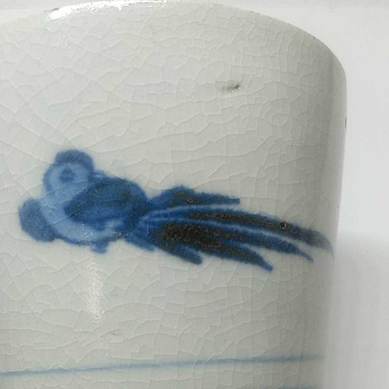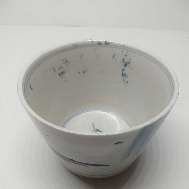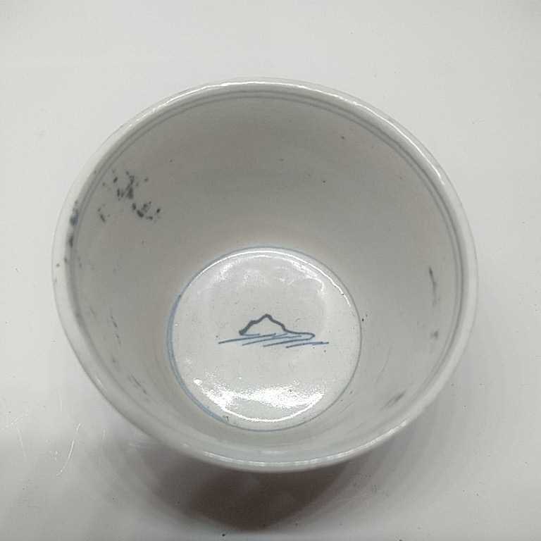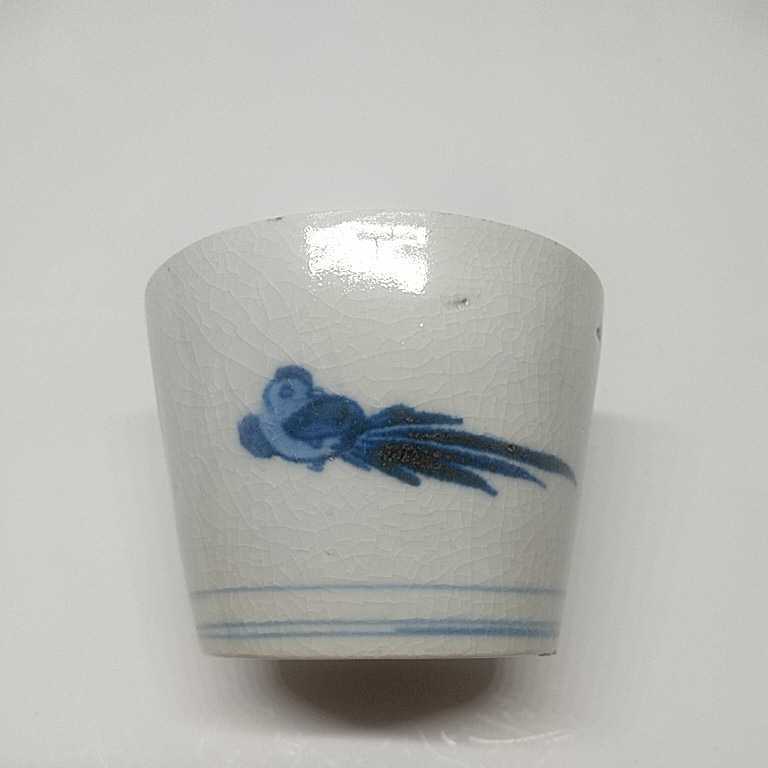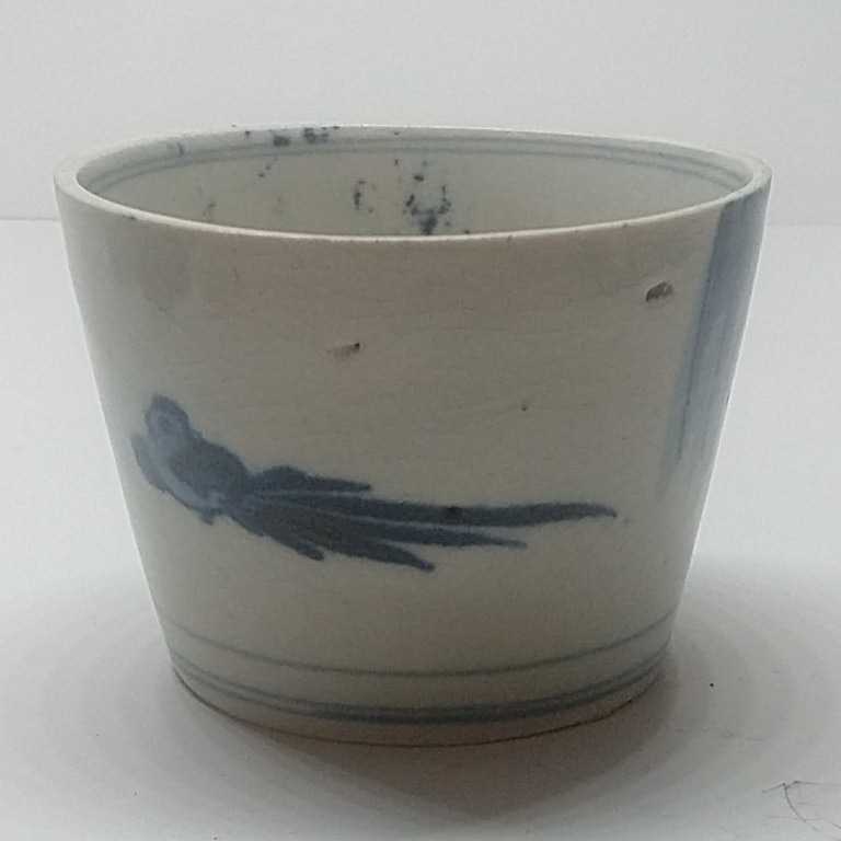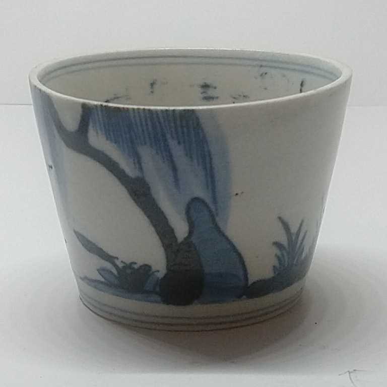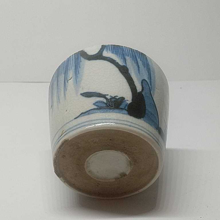 そば猪口 染付 柳と鳥 古伊万里 江戸後期