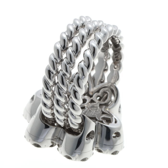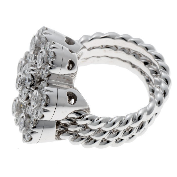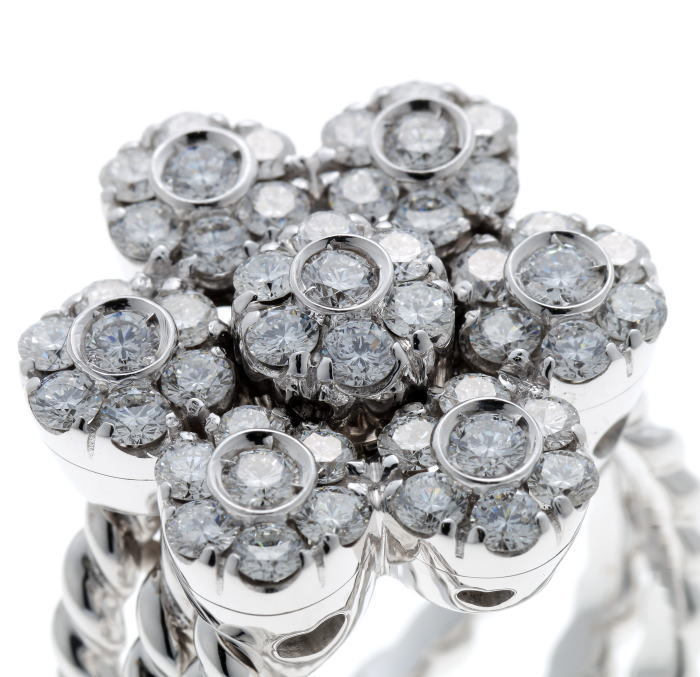 目立つダメージはありません。当店にて磨き済み。-49石ものダイヤがセットされています。フラワーモチーフはスライドできます。ホワイトゴールド。