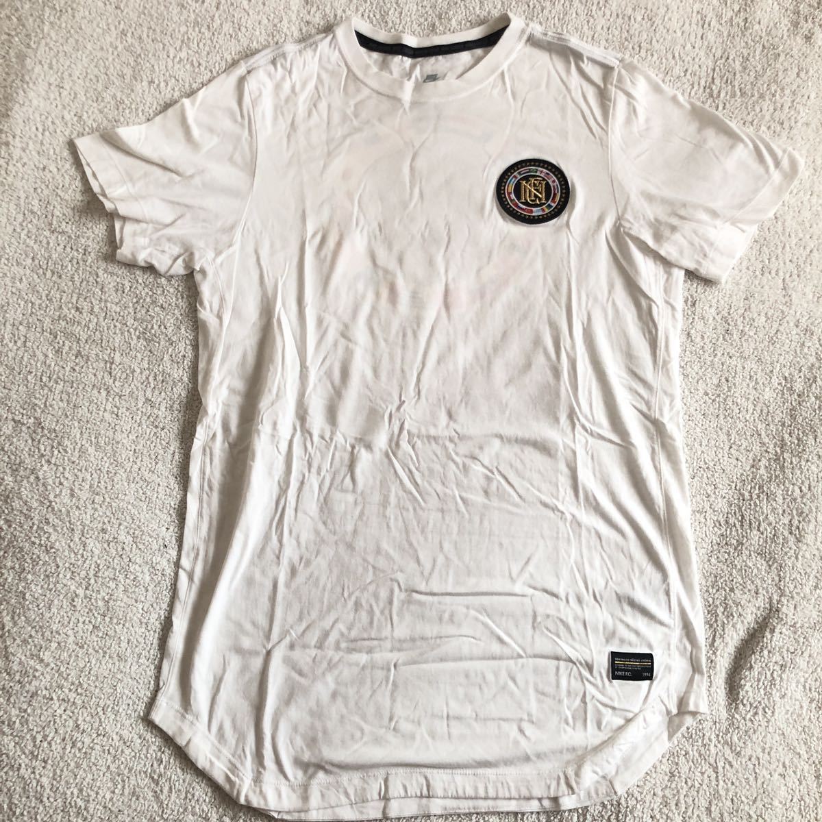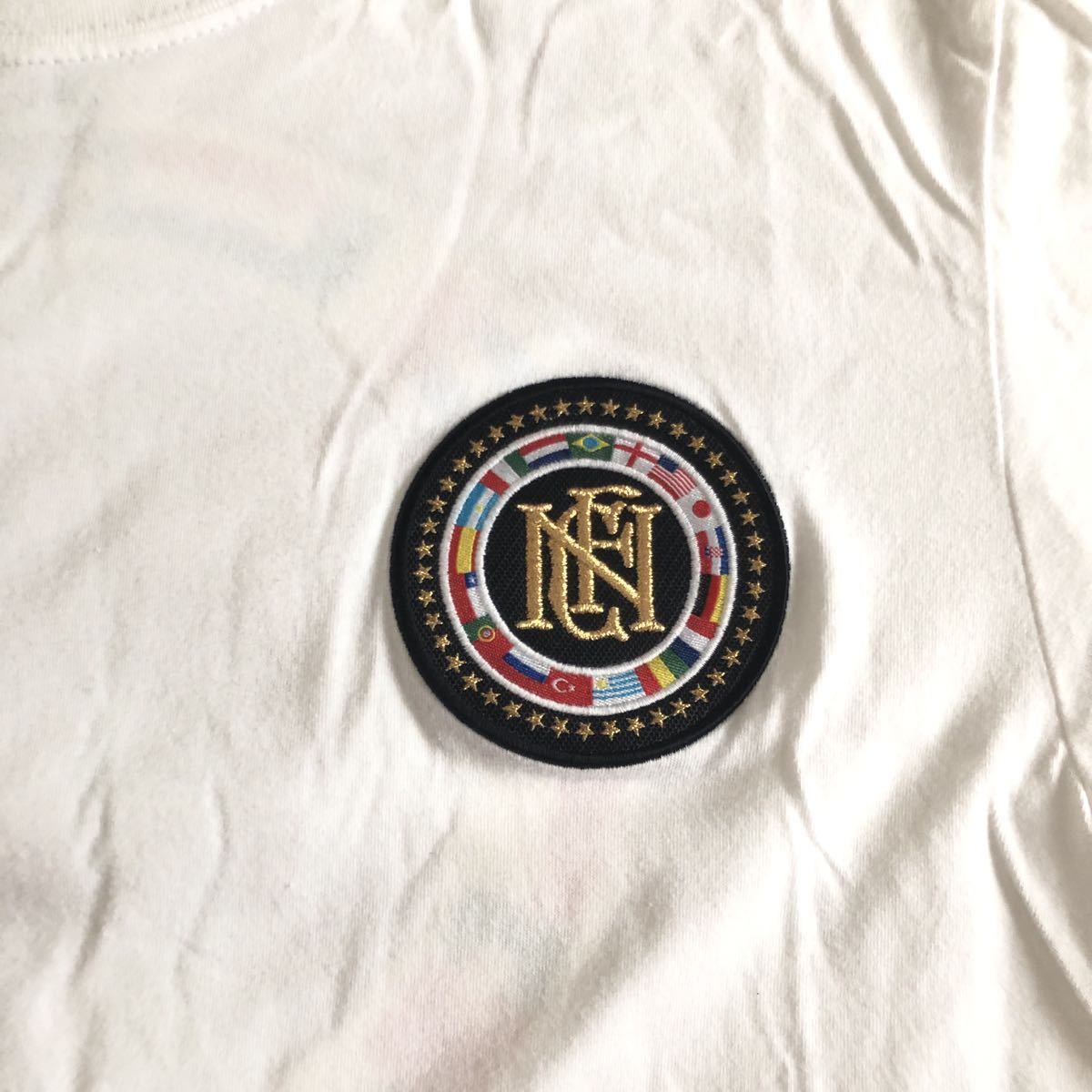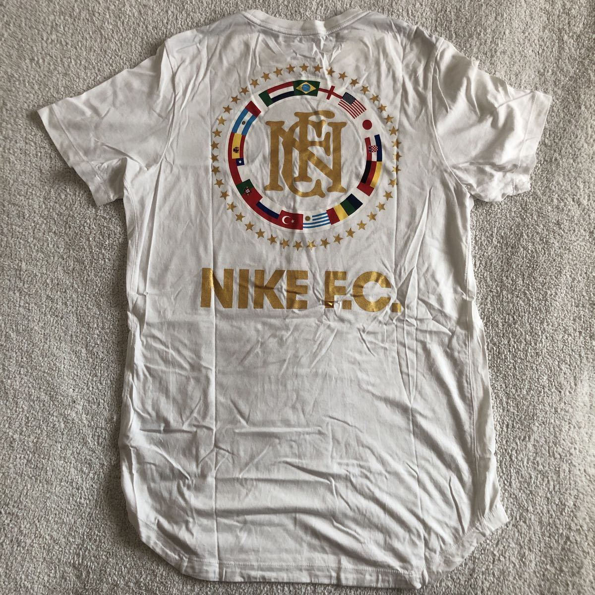 サッカーチームをモチーフにしたデザインが特徴のNIKE F.C. シリーズの万国旗モチーフのTシャツです。