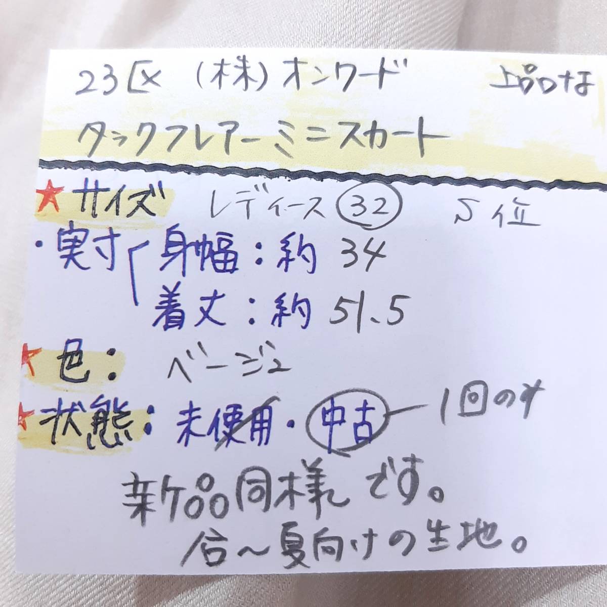 r9★新品同様★23区 ㈱オンワード樫山★上品なタックフレアーミニスカート フォーマルにも レディースSサイズ ベージュ色 冠婚葬祭 式典