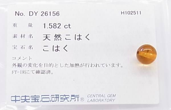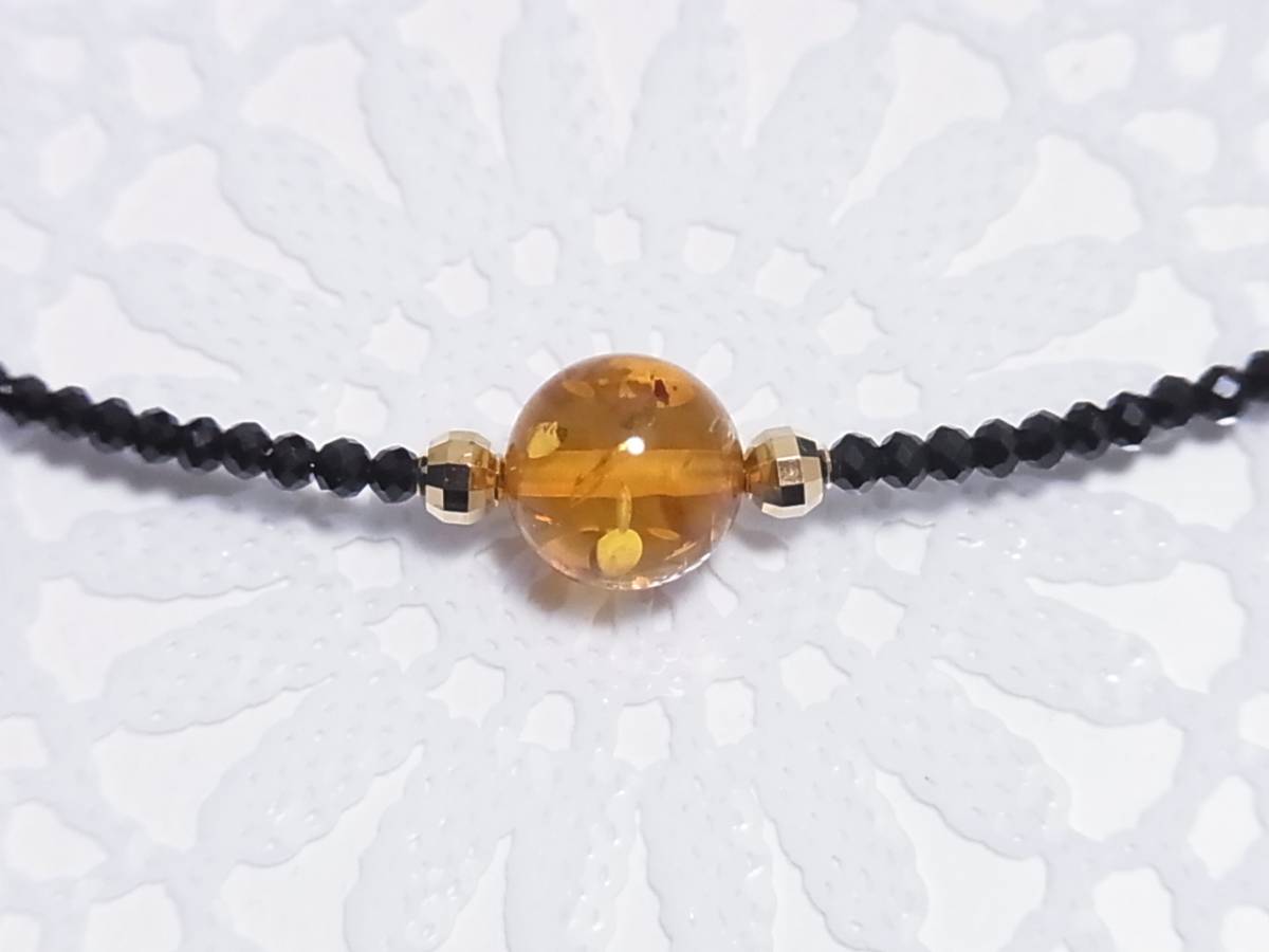 【数量限定販売になります】 近年、産出量が激減し、値段が高騰しております。 また産出国の輸出規制等によって、日本への輸入量も激減しています。 琥珀は、模造品や再生琥珀等の天然琥珀ではない琥珀が多く出回っていますが、鑑別機関の最高峰 「中央宝石研究所」 で鑑別をして、間違いない商品を供給してくれる、信用できるサプライヤーから仕入れをしています。 使用石 : 天然琥珀 約10mm / 天然ブラックスピネル 約2mm ※細かなカットを施した、高品質な天然ブラックスピネルを使用しています。 キラキラ輝き、とても綺麗です。 長さ : 約45cm (アジャスター5cmを含む) 最大幅 : 約10mm 留め金 : 引き輪式 アジャスターチェーン約5cm ブラス製 メッキ : ゴールド・コーティング 天然琥珀特有のグリッターと呼ばれるクラックやインクルージョンがあります。 グリッターは、個体差があります。 鑑別機関の最高峰 「中央宝石研究所」 で鑑別をして、間違いない商品を供給してくれる、信用できるサプライヤーから仕入れをしています。 | ||||