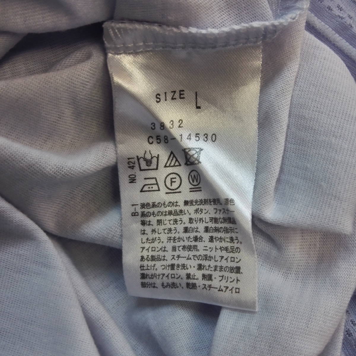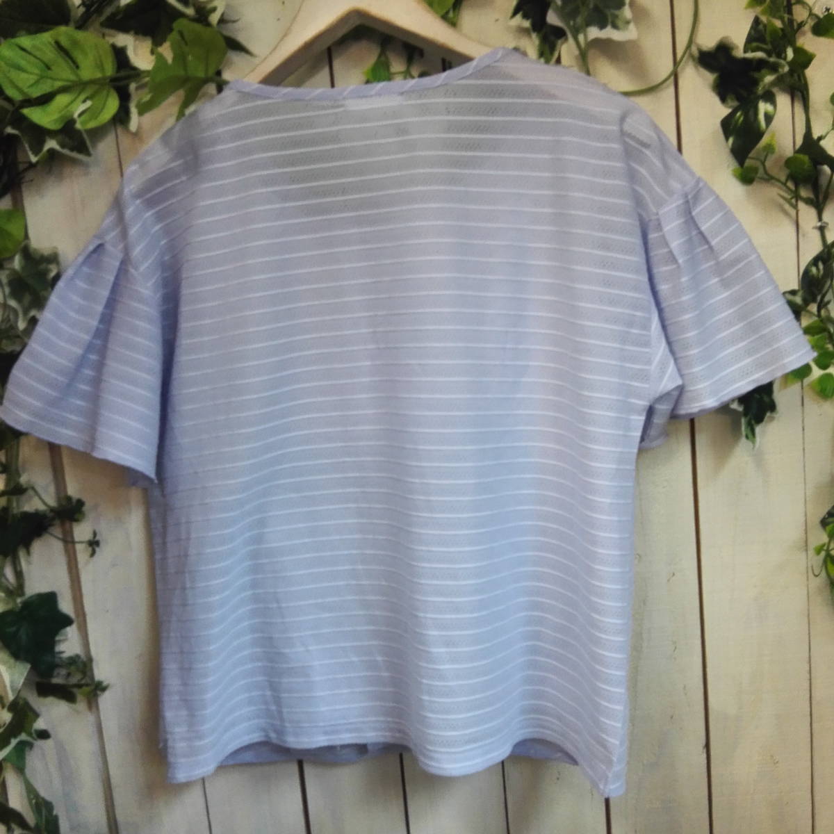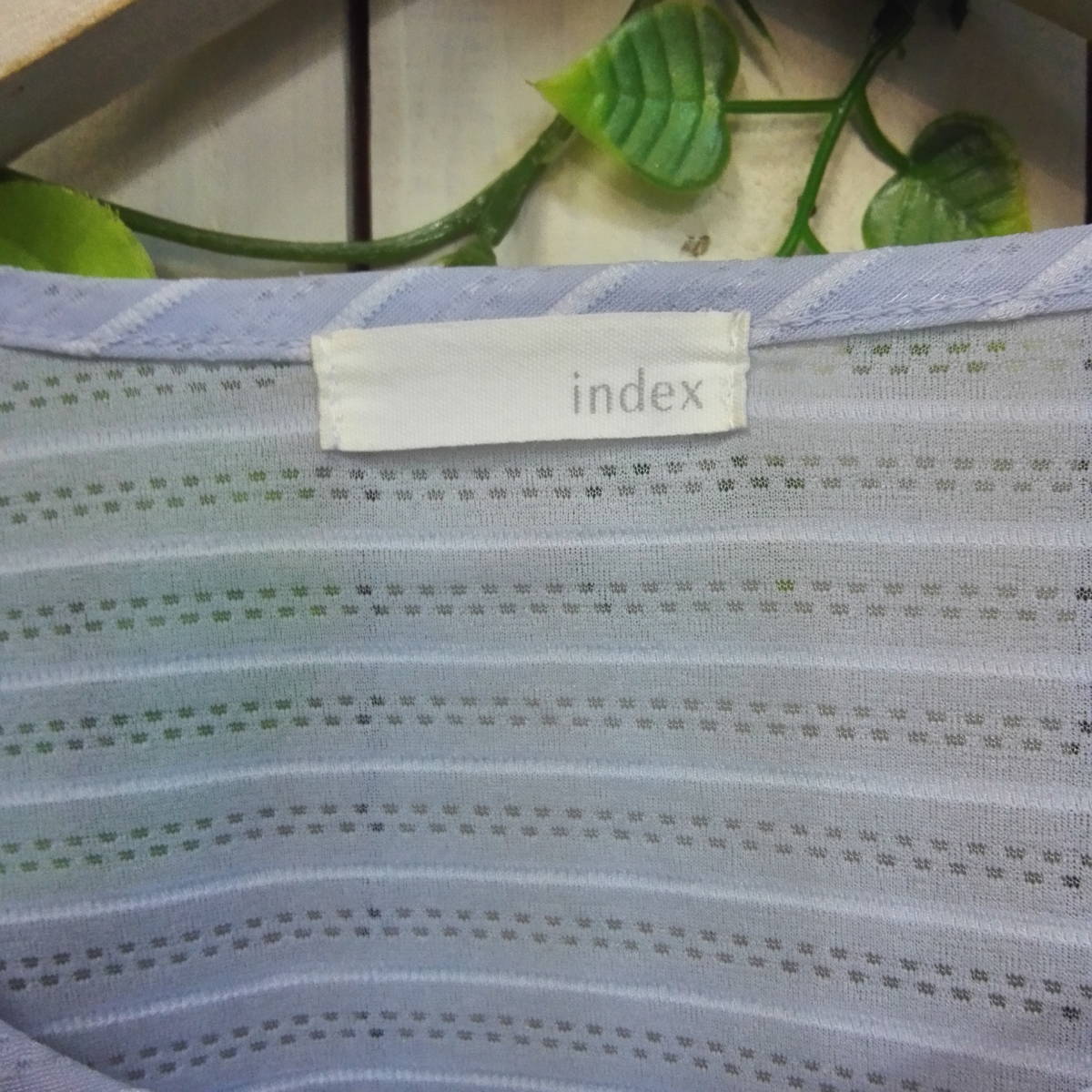 ★A564★index★インデックス★カットソー★水色ボーダー★半袖★サイズL ワールド 汚れあり