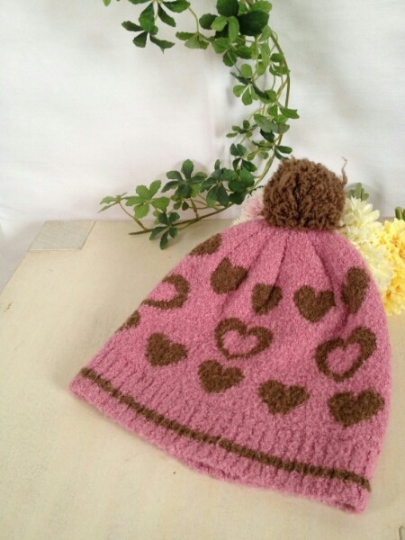 ◆柔らかくて可愛いハートのニット帽◆3歳児サイズ◆