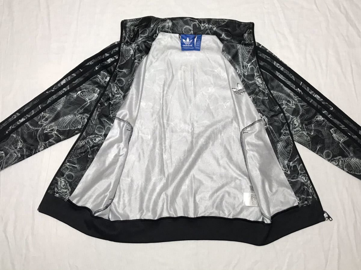 3ストライプス(肩ライン)とファイヤーバード特有の分厚いトレフォイルロゴ刺繍(ブラック)もしっかりと存在感を放ちます。両サイドのポケットはジップ付きです。