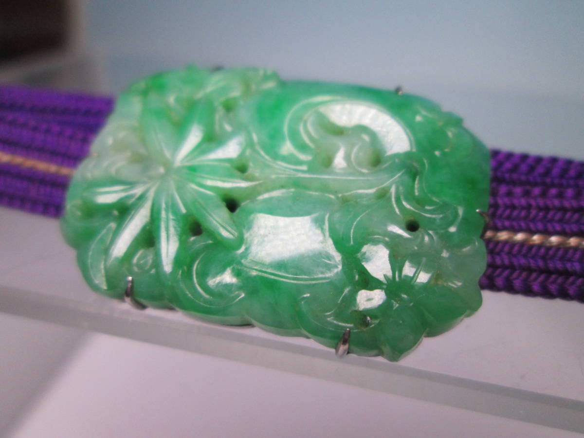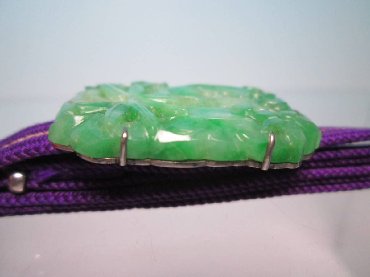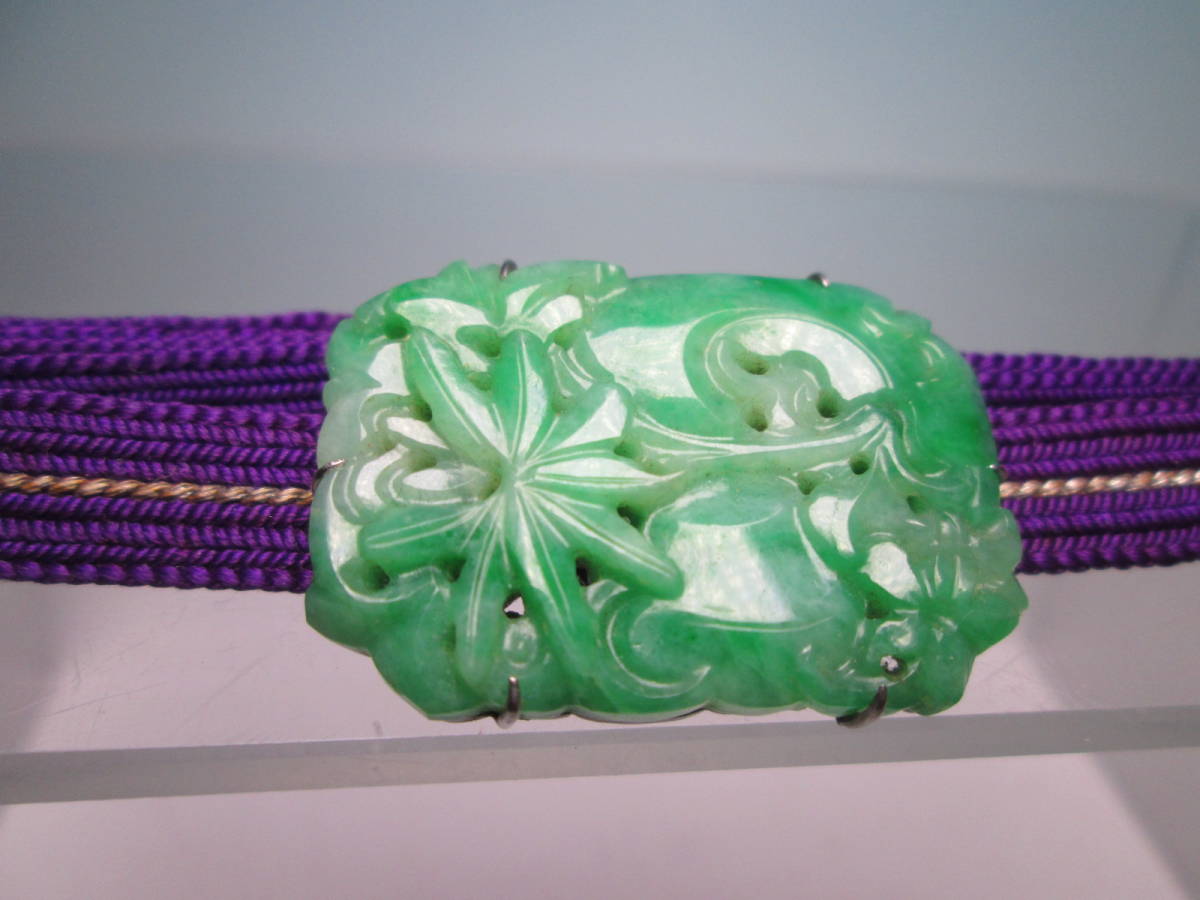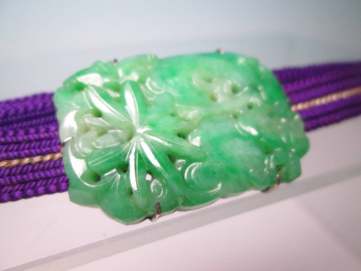 【江月】アンティーク・本翡翠 紅葉透かし彫刻の帯留め 9,07g