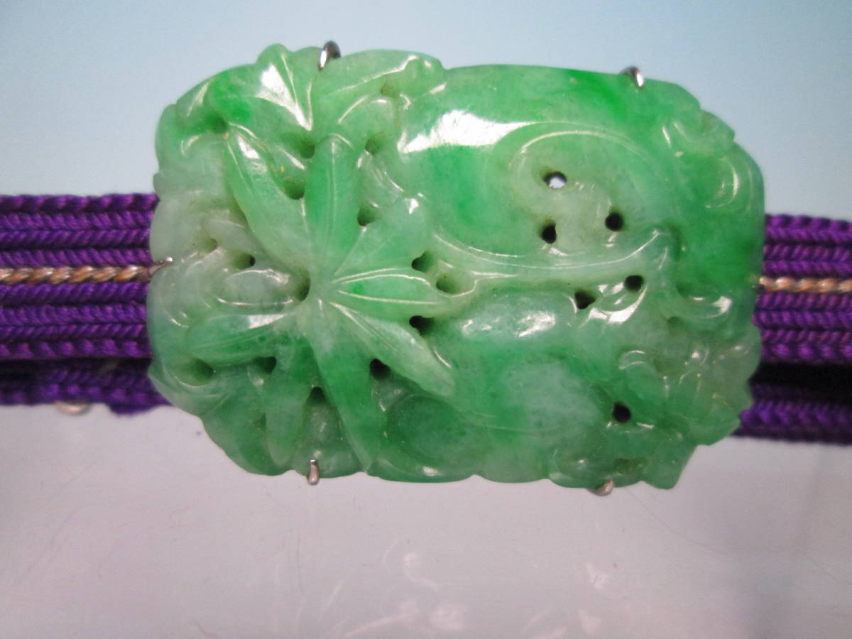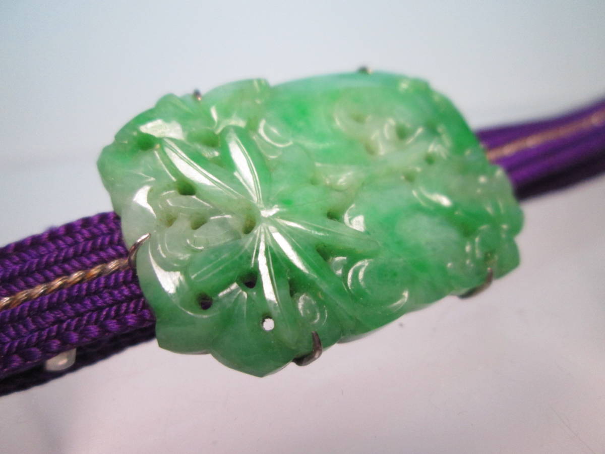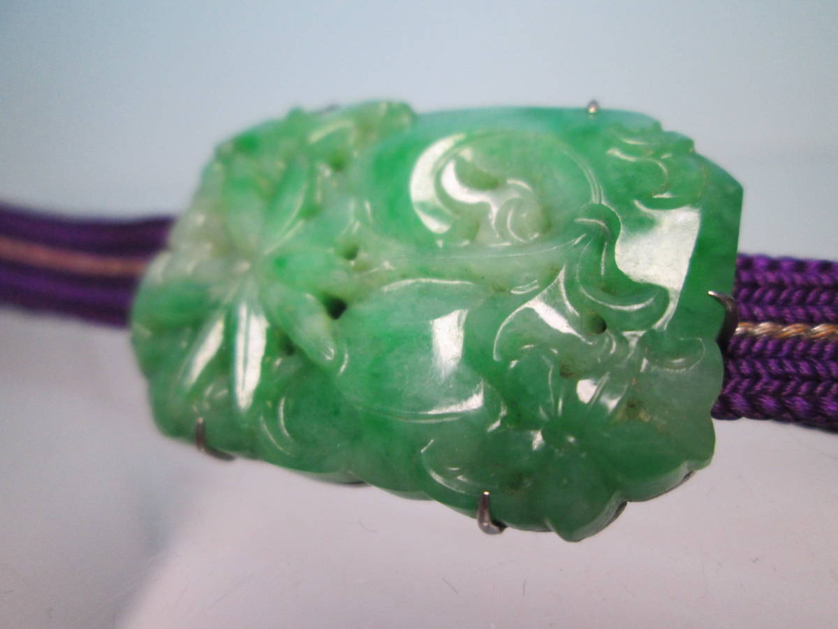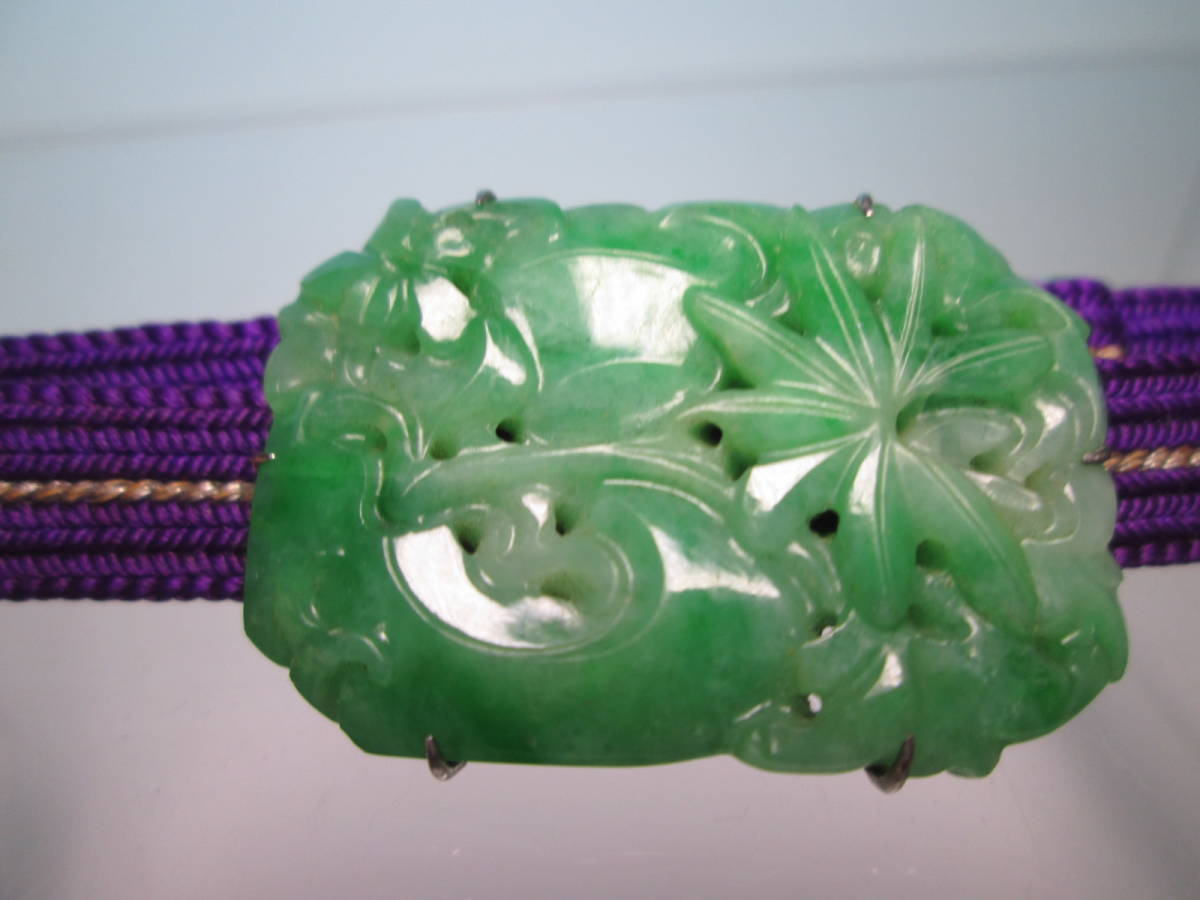 【江月】アンティーク・本翡翠 紅葉透かし彫刻の帯留め 9,07g
