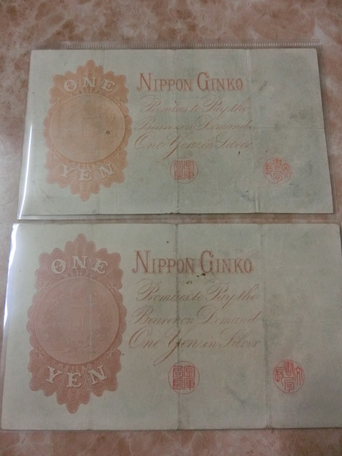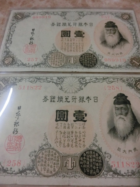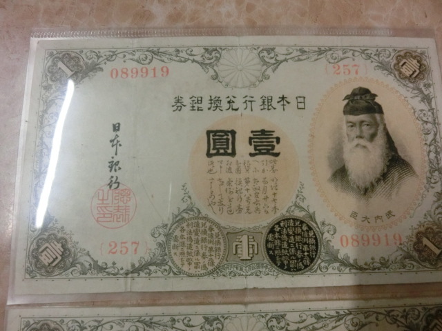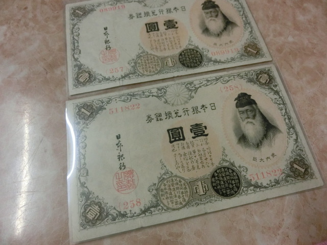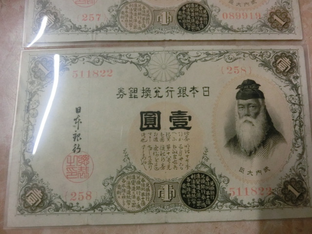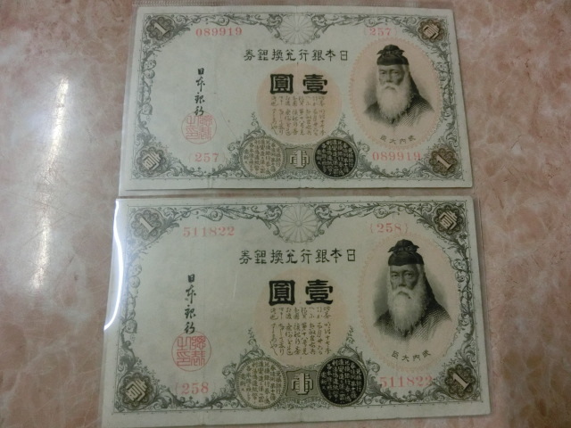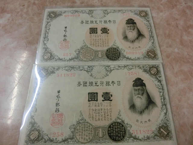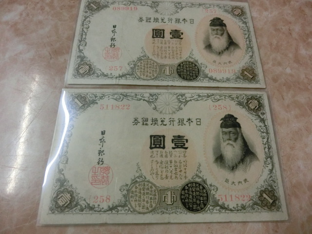 大正兌換銀行券1円 アラビア数字1円の200番台の美品~を2枚です。