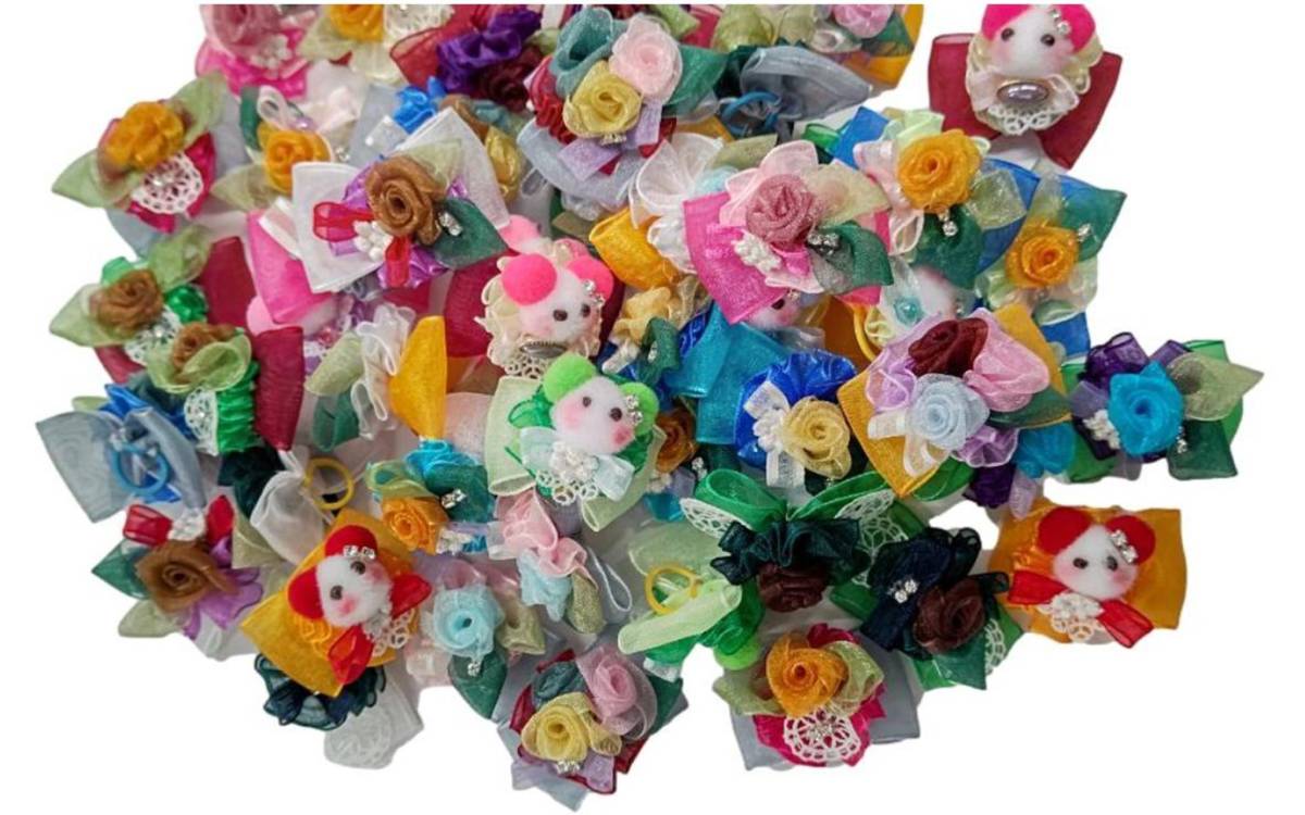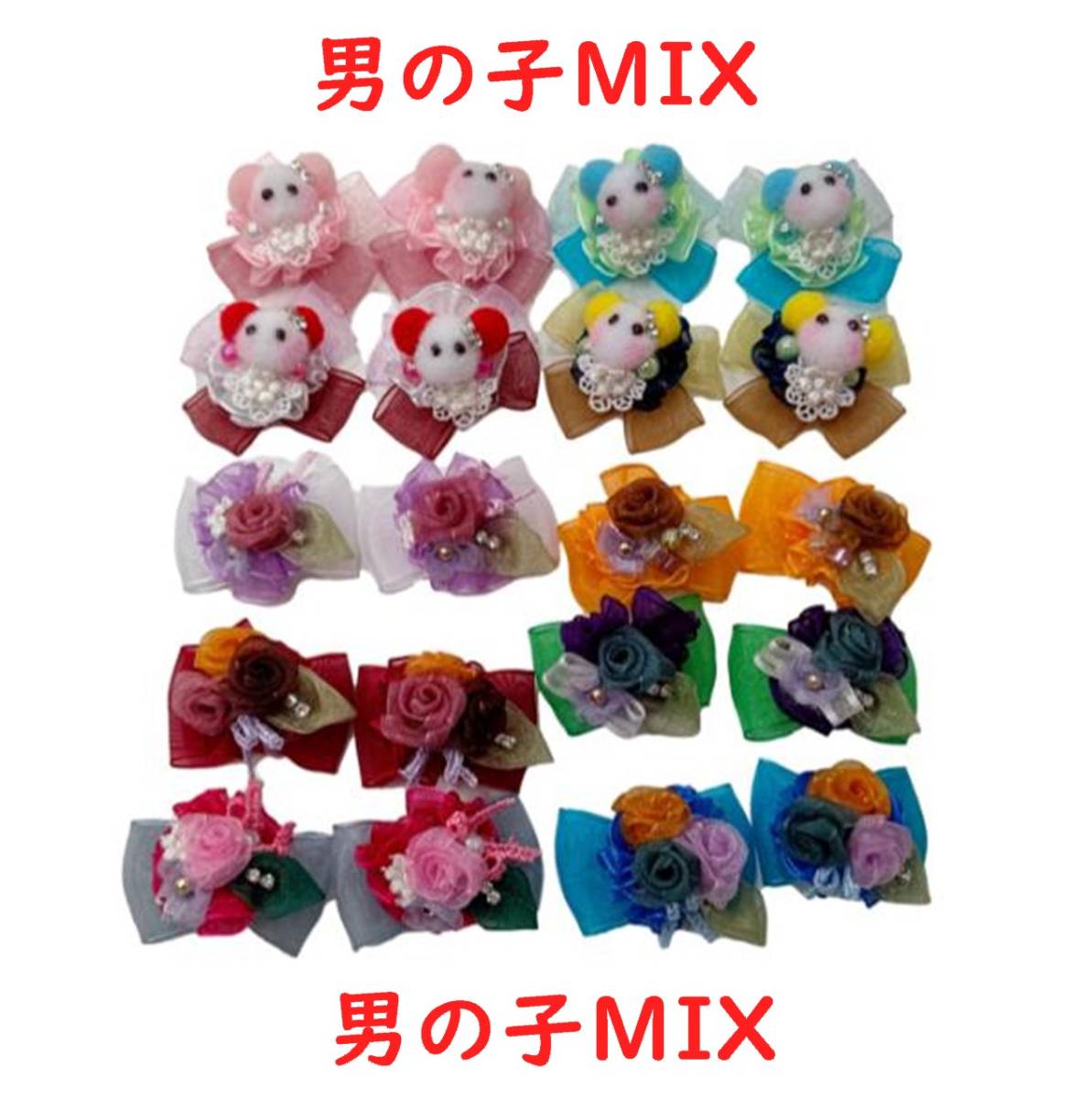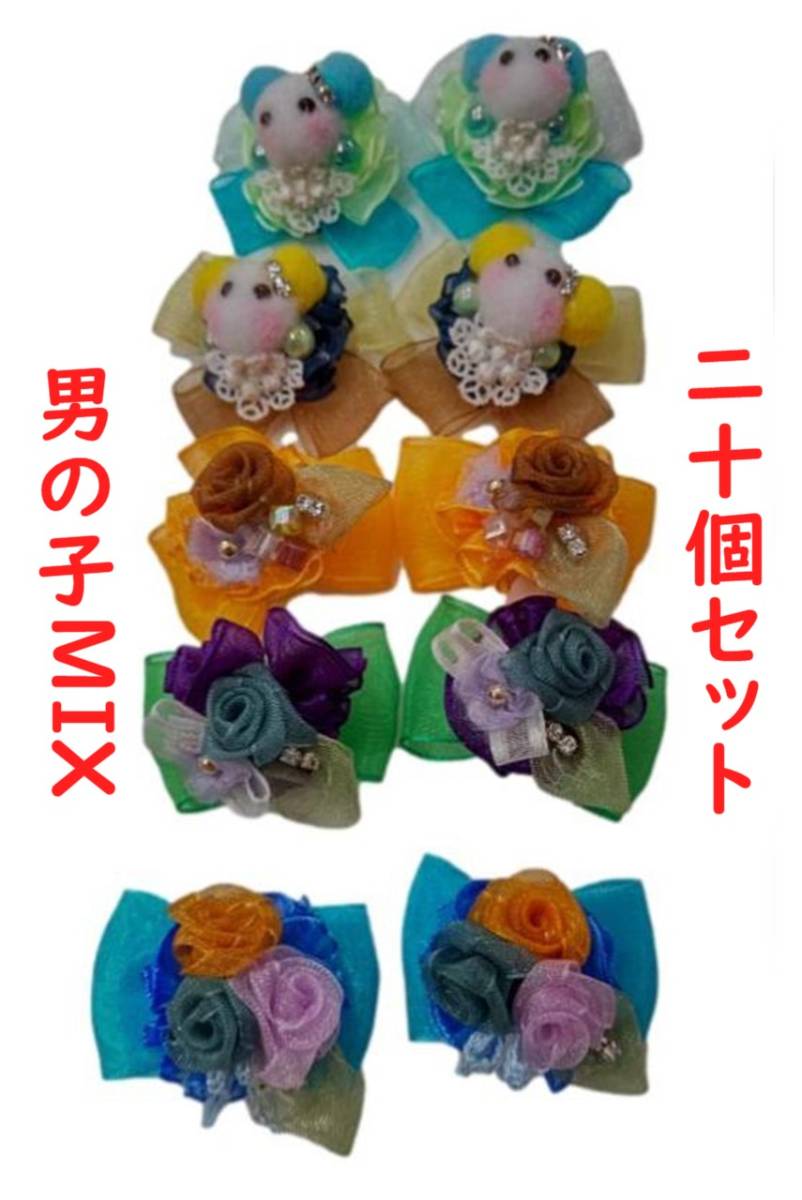 ペット用リボン 犬猫用 髪飾りリボン 20個入り (10ペア) 高級オーガンジー使用 日本製ゴム使用 (混色) (男の子MIX)【グリポッチ】