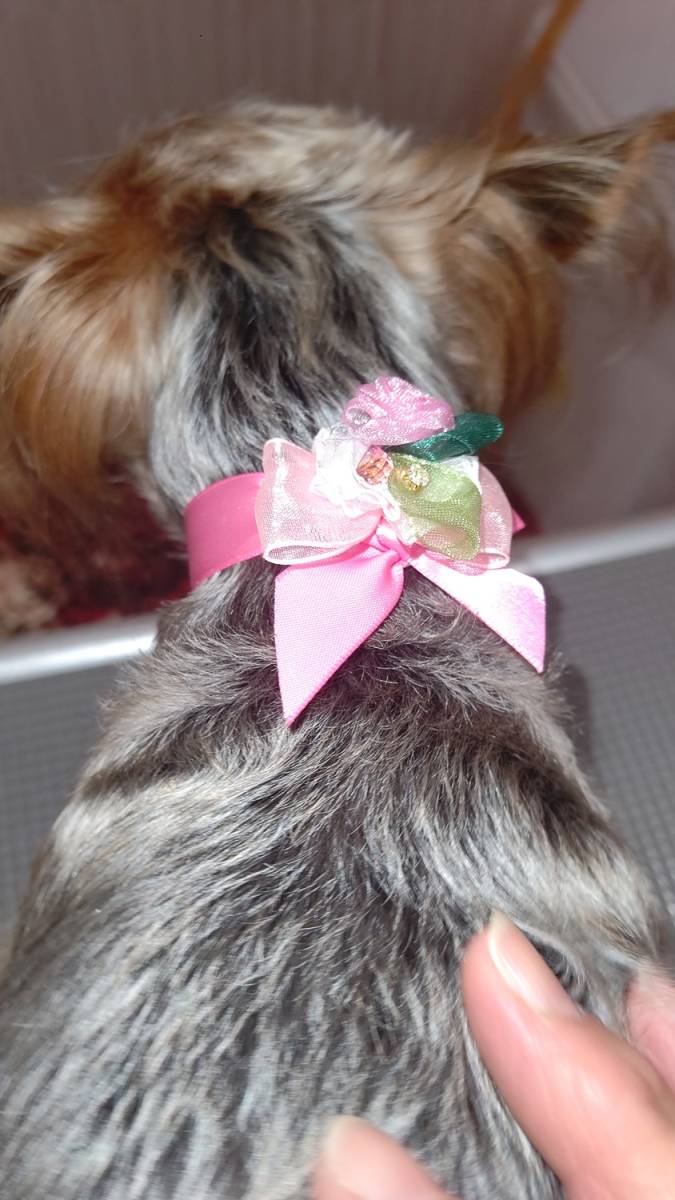 • 高級オーガンジーを使用し、ひとつひとつ丁寧に手作りした犬猫のりぼんです。 ペアになるよう同じデザインのものが2つずつセットしてあります。