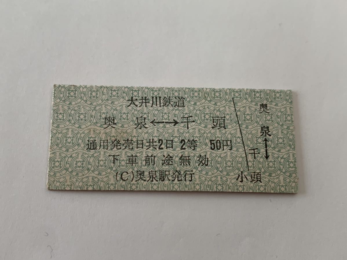こちらは古い切符 大井川鉄道 奥泉 千頭 奥泉駅発行 硬券です。