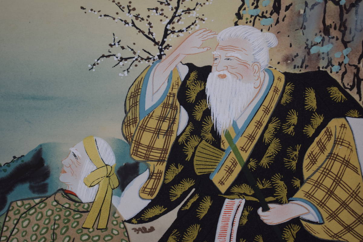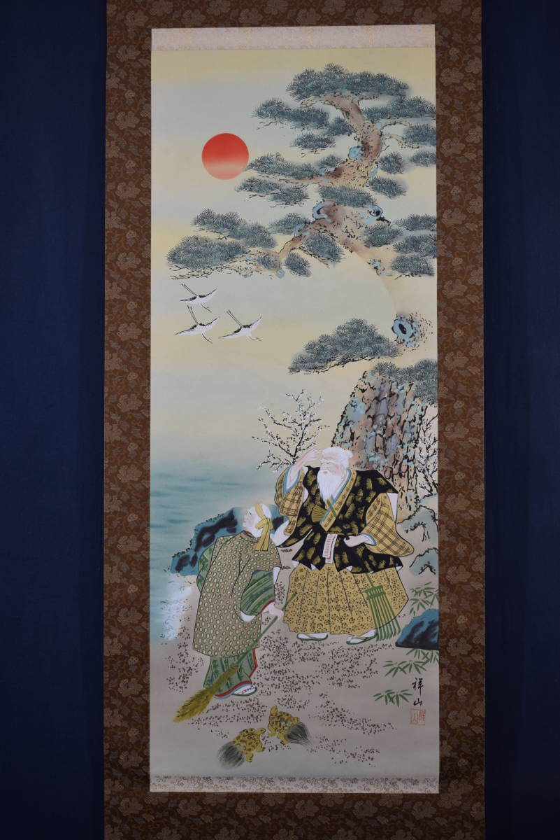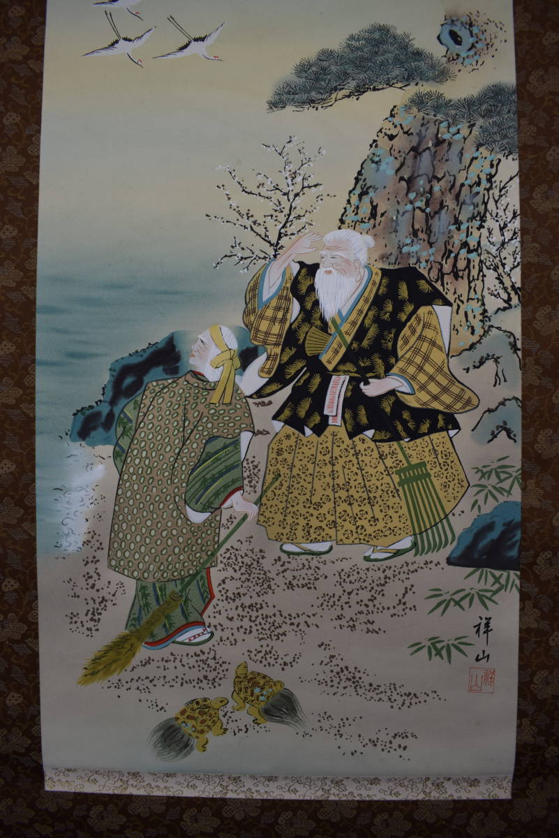 真作/柳沢祥山/高砂之図/祝事掛//掛軸☆宝船☆X-886 J