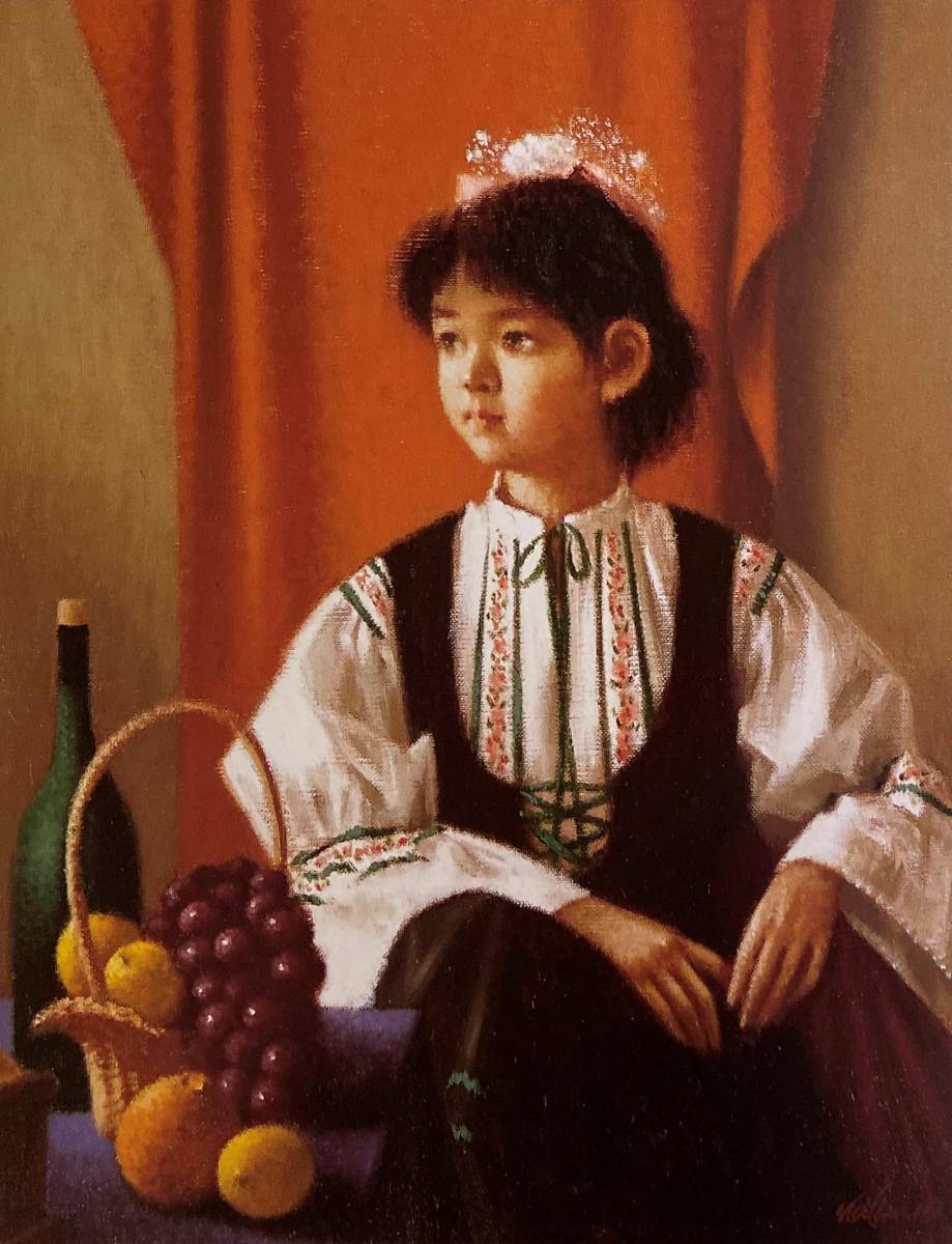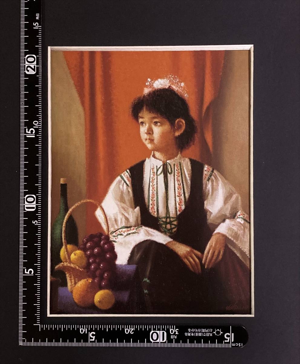 佐藤カツヤ、【リボンの少女】、希少な画集より、新品高級額、マット額装付、送料込み