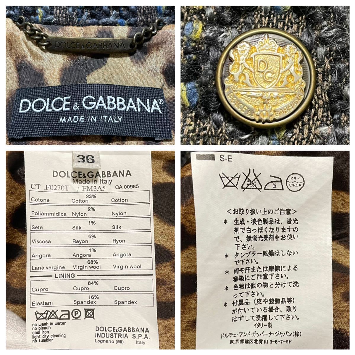 本物 ドルチェ&ガッバーナ エンブレムボタン レース パイピング ツイード ジャケット コート 36 ブラウン系 茶系 ドルガバ DOLCE&GABBANA | |||