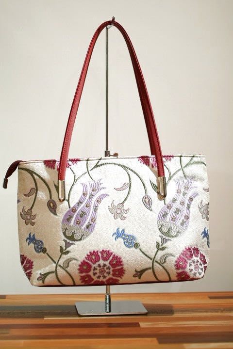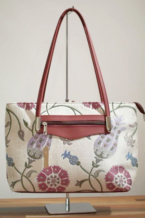 ・商品説明・ 刺繍織りのチューリップ柄がお上品なショルダーバッグです。 ◇カラー: レッド系(持ち手部分) ◆サイズ:たて約24cm よこ約32cm 奥行き約12cm ◆ファスナーつき 内ポケット×1 外ポケット×1 ◆1つ1つハンドメイドですので、多少大きさが異なることがございます。ご了承くださいませ。 ◇◆お写真はサンプルです。 同じ生地でお作りしておりますが、柄の出方が異なる場合がございます。 ◆ご質問はお気軽にどうぞ。 >>他にも、アンティークキリムやランプなどのトルコ芸術を出品中。 同梱で送料お得に♪ ・発送方法・ クロネコヤマトでお送りいたします。 ・支払方法・ Yahoo!かんたん決済に対応します。 ・コメント・ その他不明点はご質問下さい。 |