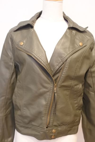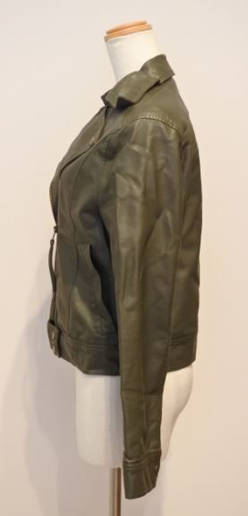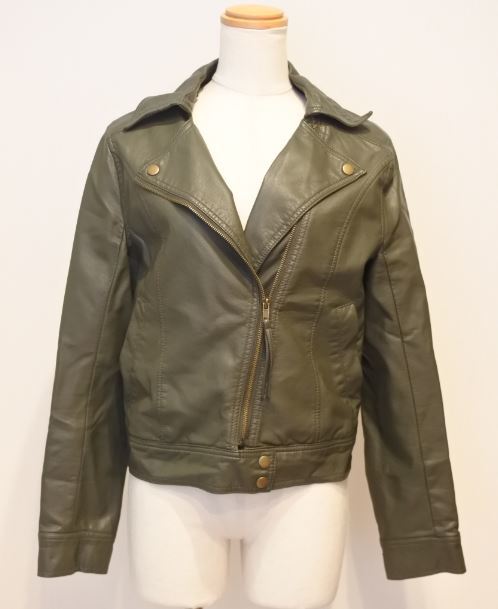 | メーカー不明 ライダースジャケット ブルゾン アウター Mサイズ モスグリーン 合皮 ondrmi k②h0407 | |||