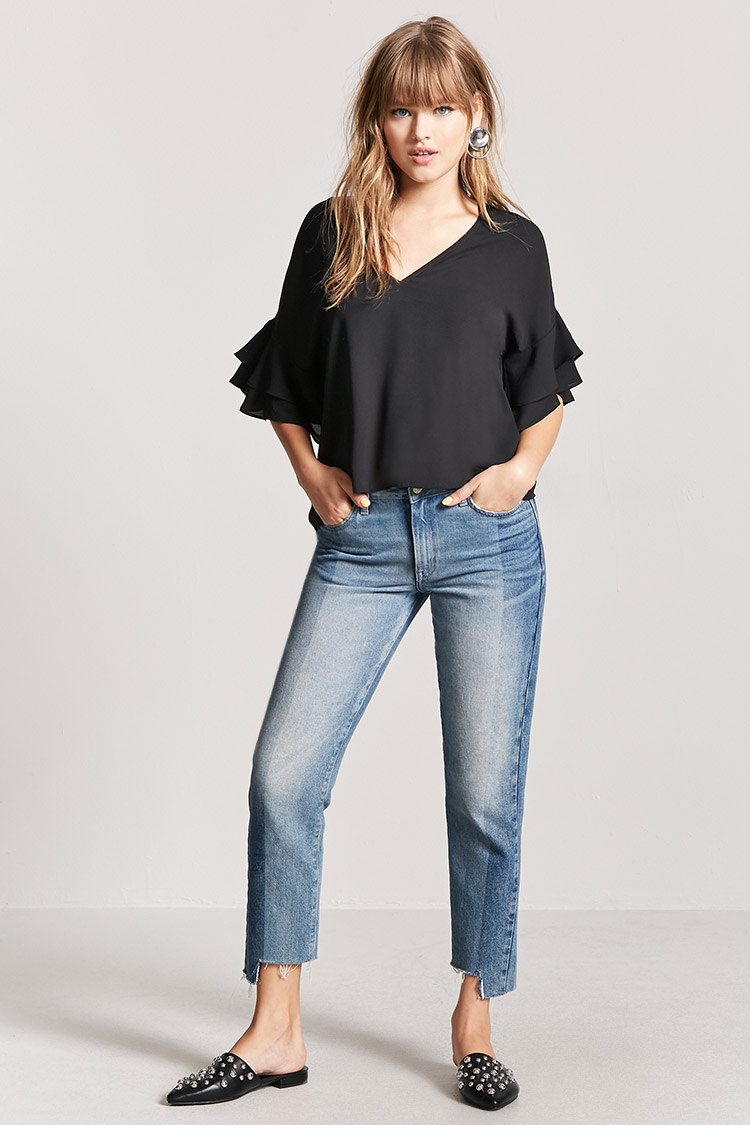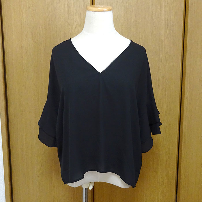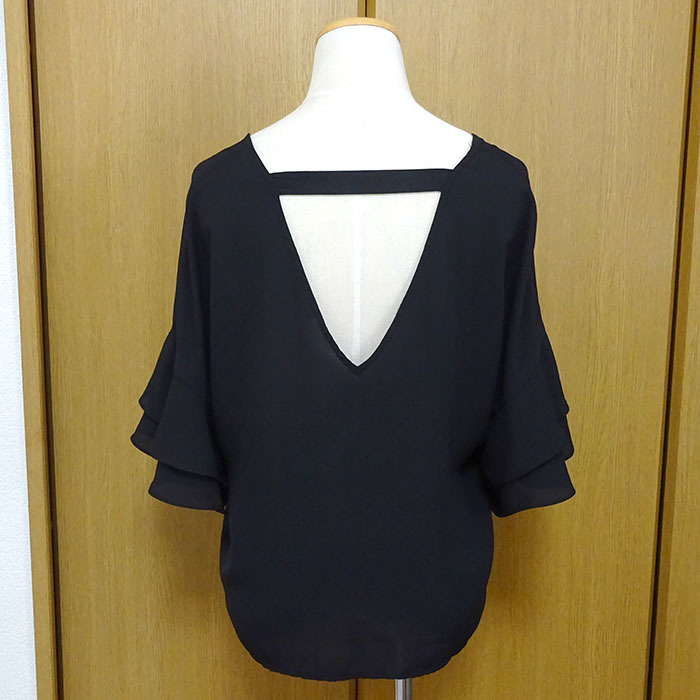 Forever21 フォーエバー21 フリル袖トップス バックデザイントップス ブラウス カットソー 黒 ブラック S 夏