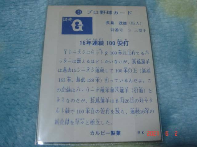 カルビー 73年プロ野球カード NO.153 (長島/巨人) 旗版 美品